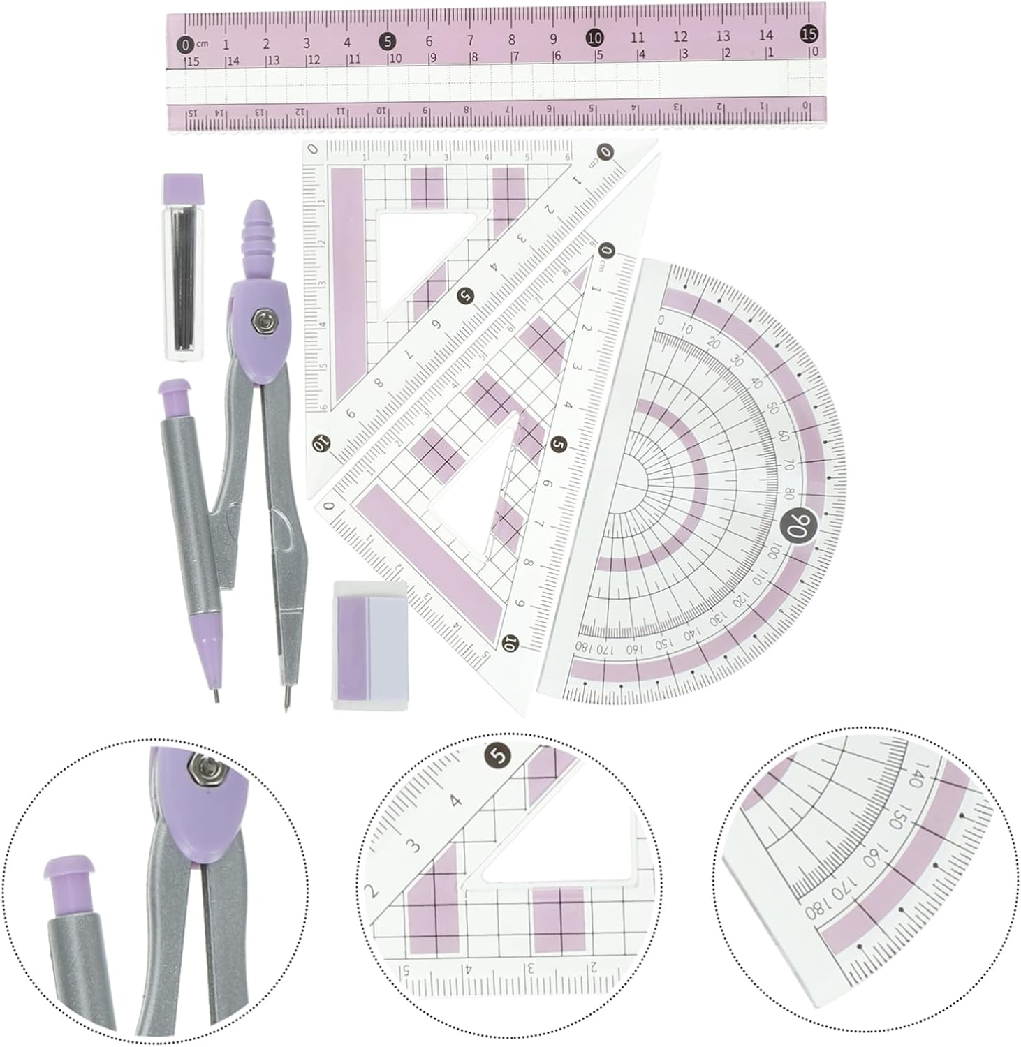 Strumenti da disegno per : struttura semplice, facile da usare, superficie resistente e liscia, puoi usarli con sicurezza, materiale scolastico Compasso da disegno per : è uno strumento di misurazione utile per artisti, designer, architetti, ingegneri, studenti, kit di compasso per il disegno dei Forniture per ufficio per studenti: i numeri sono chiari, facili da identificare e quindi puoi leggere rapidamente e con precisione, forniture scolastiche per Kit di cancelleria per ufficio: il design compatto lo rende facile da usare e riporre, rendendo i tuoi strumenti ordinati e organizzati, righello per forniture per studenti Righello triangolare per : comodo da misurare, portatile da usare e robusto per studenti, insegnanti e materiale scolastico per