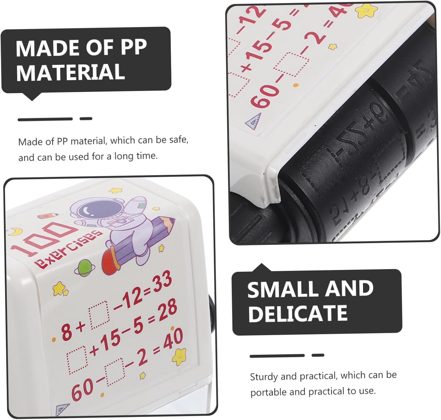 Timbro didattico per bambini: grazie al dosaggio automatico dell'olio non dovrete più preoccuparvi che l'olio vada e distrugga l'intero disegno del timbro. Rotolo di timbri didattici: questo timbro matematico è diverso dagli altri e li fa risaltare. Timbro per studenti: il timbro matematico è realizzato in materiale PP, resistente e di lunga durata. Timbro digitale per insegnare con i rulli: grazie al design compatto, è facile da trasportare e riporre ed è molto comodo da usare. Il rullo matematico per gli studenti Rullo matematico: questo set di timbri matematici porterà gioia ed entusiasmo agli studenti, ai tuoi studenti piacerà, timbro matematico, timbro didattico