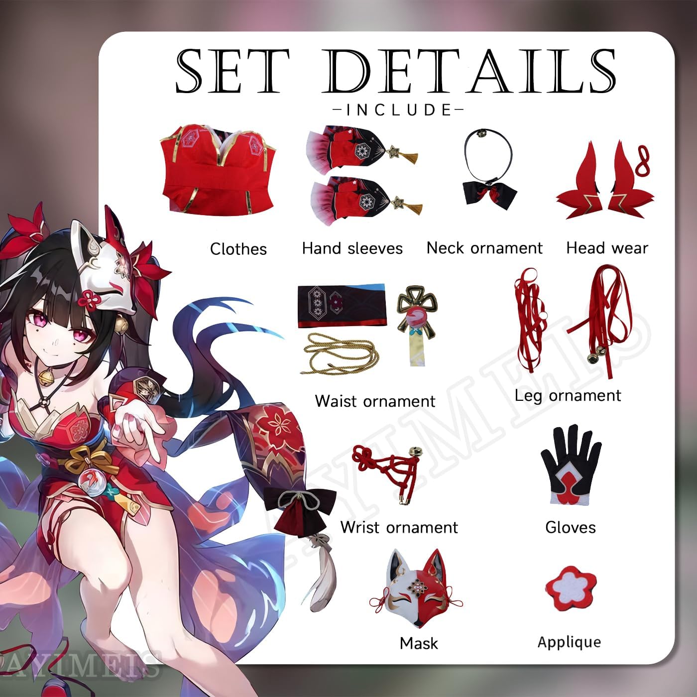 【Il pacchetto include】 - Abito *1, Maniche *2, Collana *1, Accessori per capelli *3, Accessori per la vita *3, Accessori per le gambe *2, Accessori per i polsi *1, Guanti *1, Maschera *1, Adesivo *1 (come mostra l'immagine). 【Materiale principale】 - Poliestere. Realizzato in materiale di alta qualità, morbido, comodo da indossare e abbastanza resistente. 【Caratteristiche dell'abbigliamento】 - Costume Cosplay di Honkai Star Rail Sparkle, Ripristinando i dettagli dell'abbigliamento di un personaggio animato, con un set completo di accessori, consente di completare facilmente il gioco di ruolo. 【Ampia applicazione】 - Perfetto per feste in costume a tema, festival, Halloween, carnevali, spettacoli teatrali, fotografia, fumetti, cosplay ecc. 【Riferimento taglia】 - Per assicurarti di ottenere una taglia adatta a te, fare riferimento alla nostra tabella delle taglie prima dell'acquisto (ultima foto).