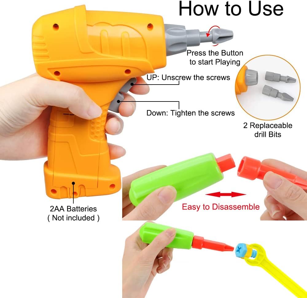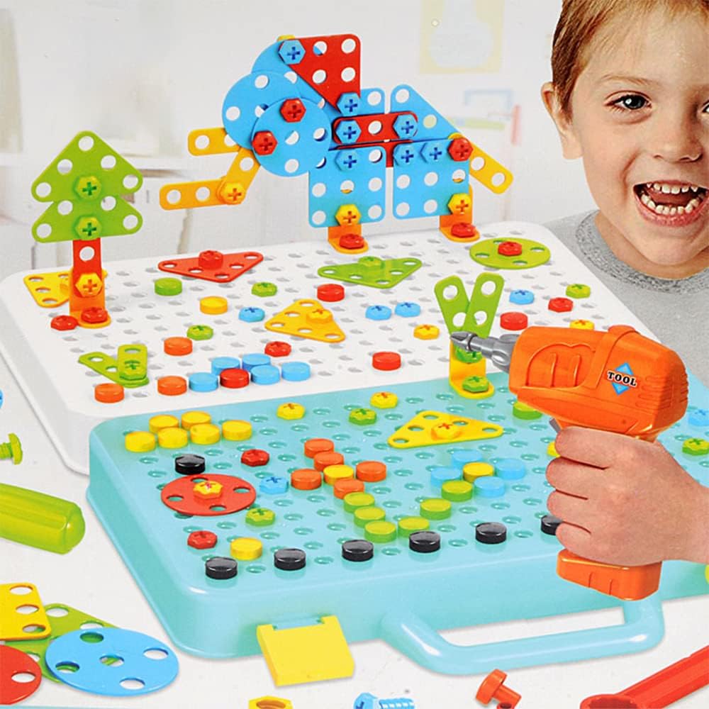【DIVERTENTE DA GIOCARE】 Con il trapano, i bambini possono avvitare e svitare le viti ABS e le schede a mosaico nei fori della scatola per creare vari modelli interessanti, per ottenere lo sviluppo STEM con l'ingegneria di base. Grande sviluppo motorio fine, cognitivo del colore, capacità di lavoro di squadra, abilità artistica cognitiva, sensoriale, cognitiva, abilità pratica, immaginazione e creatività. 【Materiale sicuro】 Il set di puzzle trapano viene fornito con 252 pezzi e i giocattoli puzzle creativi sono realizzati in plastica ABS atossica, resistente, robusta e non facile da rompere. Trapano elettrico incluso (2 batterie da 1,5 V non incluse), punta da trapano e viti. Questo set di giocattoli STEM è stato certificato come non tossico e privo di piombo/BPA dal laboratorio di terze parti. Tutte le parti sono dotate di angoli e bordi lisci, abbastanza sicuri per far giocare i bambini. 【Tutti i livelli lo adorano】 Ci sono infinite combinazioni di edifici 1D, 2D e 3D! Includiamo un manuale a colori con 40 modelli e sfide da facili a difficili. I più piccoli adorano gli strumenti che perforano le viti nella base. I bambini più grandi amano la complessità delle costruzioni e amano gli edifici 3D. I nostri blocchi educativi crescono anche con tuo figlio. 【Stoccaggio e portatile】 Una valigia dal design portatile che può essere utilizzata su entrambi i lati. La scatola di immagazzinaggio di grande capacità può essere utilizzata per riporre tutti i piccoli oggetti dopo aver giocato, pulizia senza disordine e facile stoccaggio per il trasporto da un posto all'altro! 【Ottimo regalo】 Questo set di costruzioni fai-da-te combina i giochi con l'apprendimento, il che può aumentare l'interesse dei bambini per l'apprendimento. Questo giocattolo STEM è la scelta ideale come regalo per compleanni, Natale, lauree, Ringraziamento o qualsiasi altra occasione adatta. Perfetto per i bambini di età compresa tra 3 e 12 anni. È anche un ottimo modo per i bambini di trascorrere del tempo interattivo di qualità con la famiglia e gli amici.