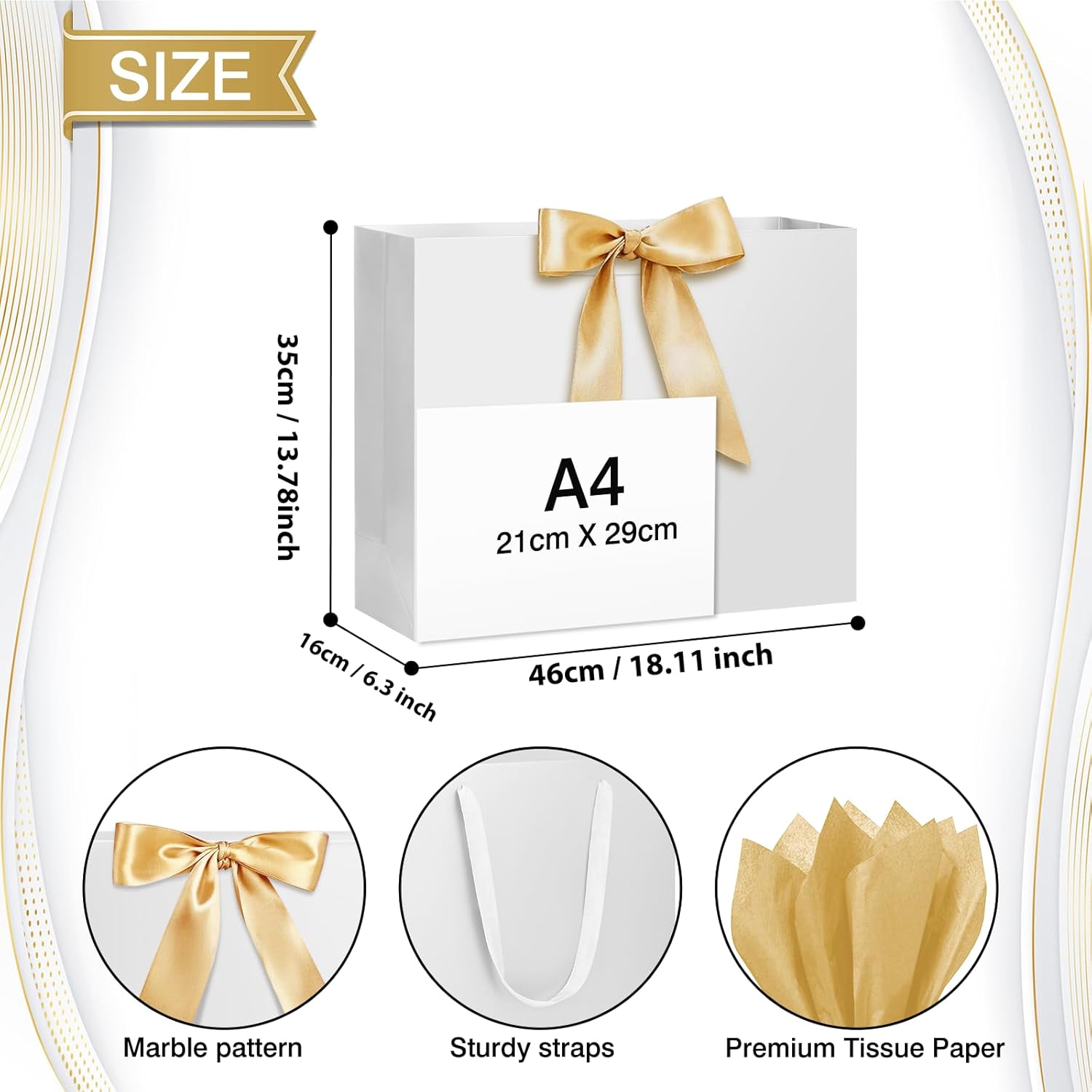 Grande! grande! Grande!: i sacchetti regalo in carta misurano 18,11*13,78*5,91/40*35*15 cm. I sacchetti regalo possono contenere facilmente una varietà di regali come scatole regalo. Ogni set di sacchetti regalo contiene 4 pezzi di carta da regalo, 2 biglietti e 2 nastri. Accessori pratici: ogni sacchetto regalo di Natale viene fornito con carta Sydney e un biglietto che aumenta il livello del regalo. Le carte possono essere utilizzate per scrivere benedizioni e presentare perfettamente il tuo cuore. Materiali di alta qualità: i sacchetti regalo sono realizzati in cartone di alta qualità da 300 g, robusto e durevole e con una buona capacità portante. I sacchetti regalo grandi sono l'ideale se non devi preoccuparti di rotture o deformazioni. Confezione regalo natalizia: i sacchetti regalo sono venduti in gruppi di 2 set. I set di sacchetti regalo sono adatti anche per acquisti in grandi quantità da parte di clienti aziendali, offrendo un'opzione conveniente per confezionare regali promozionali. Molteplici usi: design sottile, materiali ecologici e riciclabili rendono i sacchetti regalo ideali per celebrazioni, eventi o regali aziendali. I sacchetti regalo hanno in mente sia il gusto che la sostenibilità.