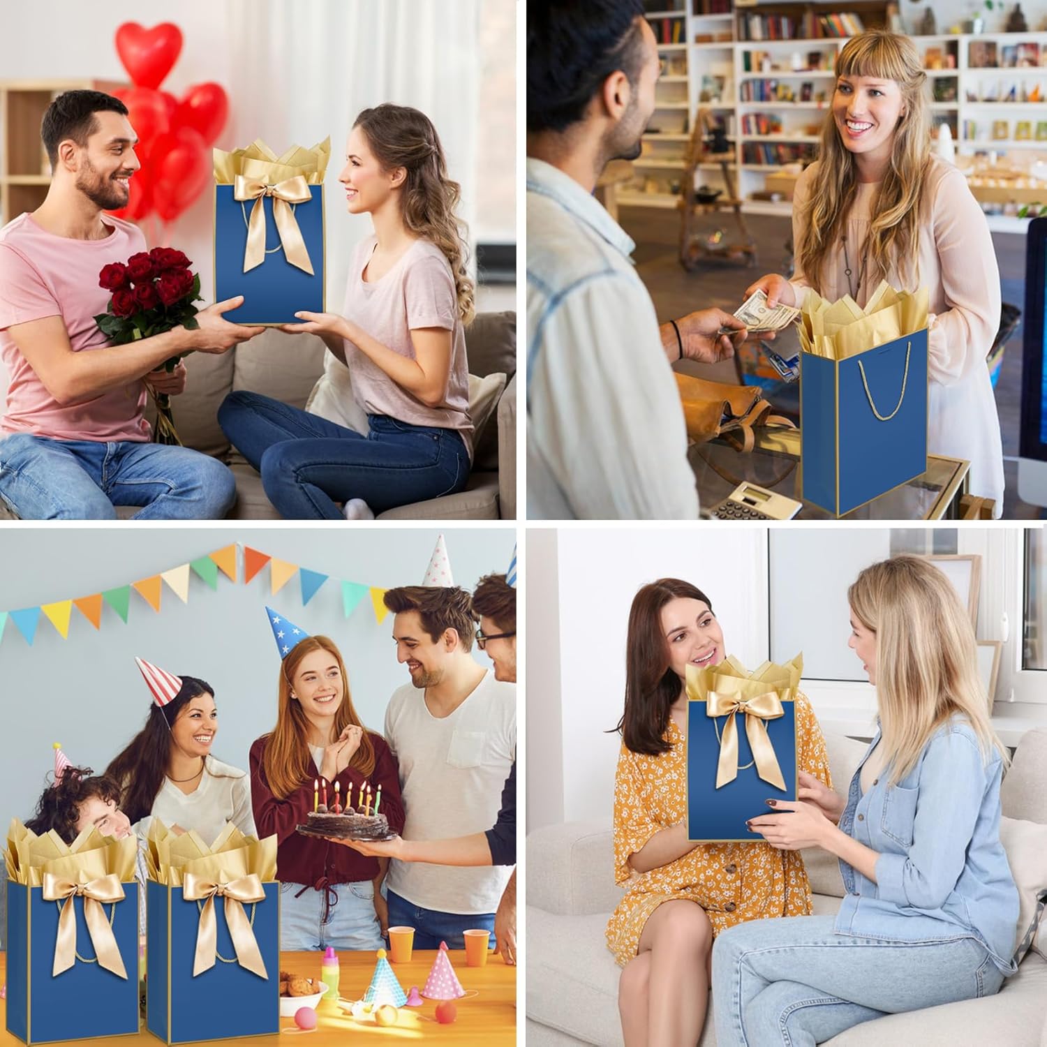 Materiali di alta qualità: i sacchetti regalo sono realizzati in cartone di alta qualità da 300 g, robusto e durevole e con una buona capacità portante. I sacchetti regalo grandi sono l'ideale se non devi preoccuparti di rotture o deformazioni. Dimensioni: la carta dei sacchetti regalo misura 32 cm × 25 cm × 12 cm (12,6 × 9,8 × 4,7) e offre molto spazio all'interno. X può facilmente contenere una varietà di regali come scatole regalo e profumi, il che è pratico e bello. Accessori pratici: ogni sacchetto regalo di Natale viene fornito con carta Sydney e un biglietto che aumenta il livello del regalo. Le carte possono essere utilizzate per scrivere benedizioni e presentare perfettamente il tuo cuore. Un set di 10 confezioni regalo natalizie: le buste regalo sono vendute in set da 10. I set di buste regalo sono adatti anche per acquisti in grandi quantità da parte di clienti aziendali, offrendo un'opzione conveniente per confezionare regali promozionali. Molteplici usi: design sottile, materiali ecologici e riciclabili rendono i sacchetti regalo ideali per celebrazioni, eventi o regali aziendali. I sacchetti regalo hanno in mente sia il gusto che la sostenibilità.