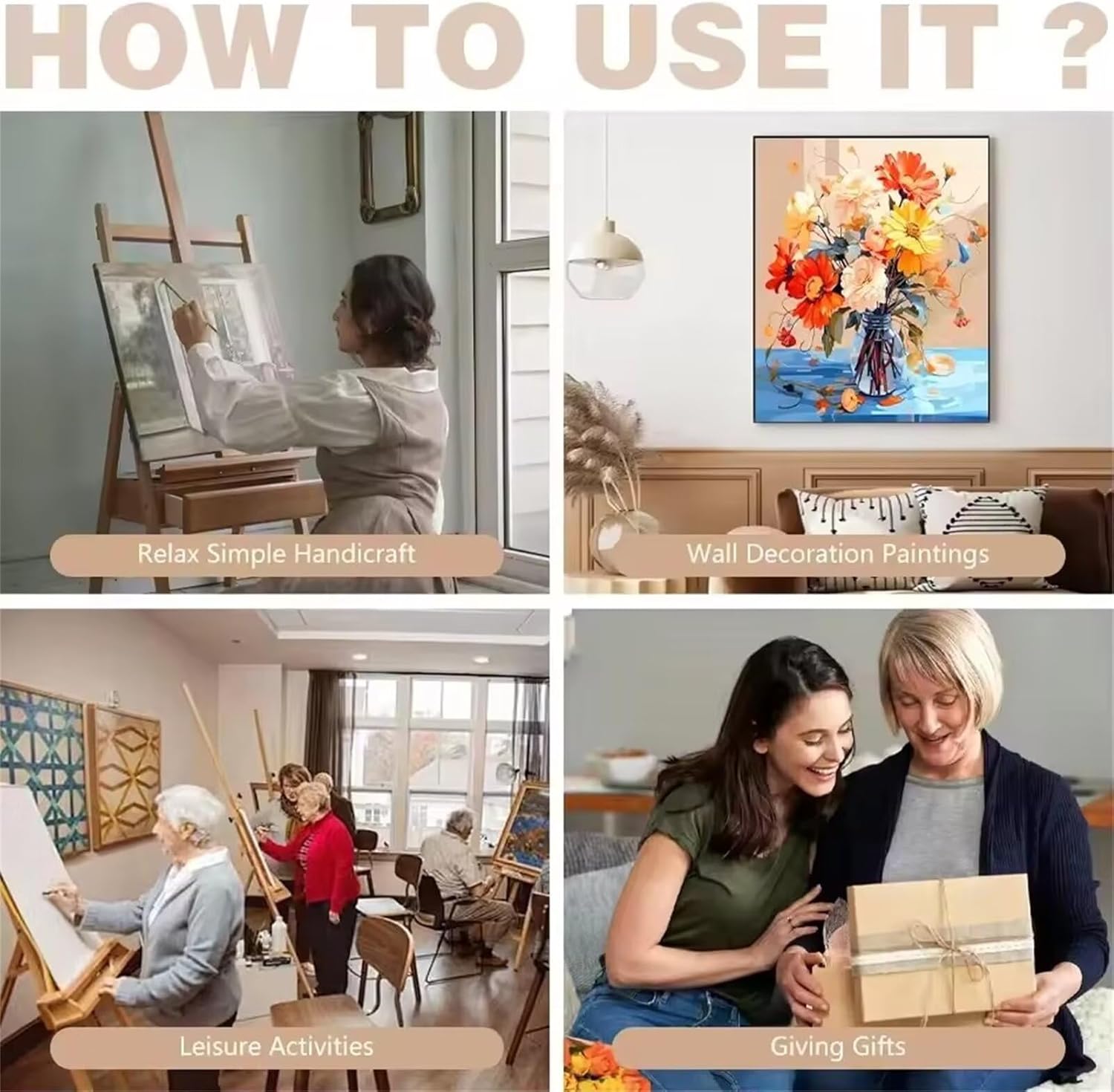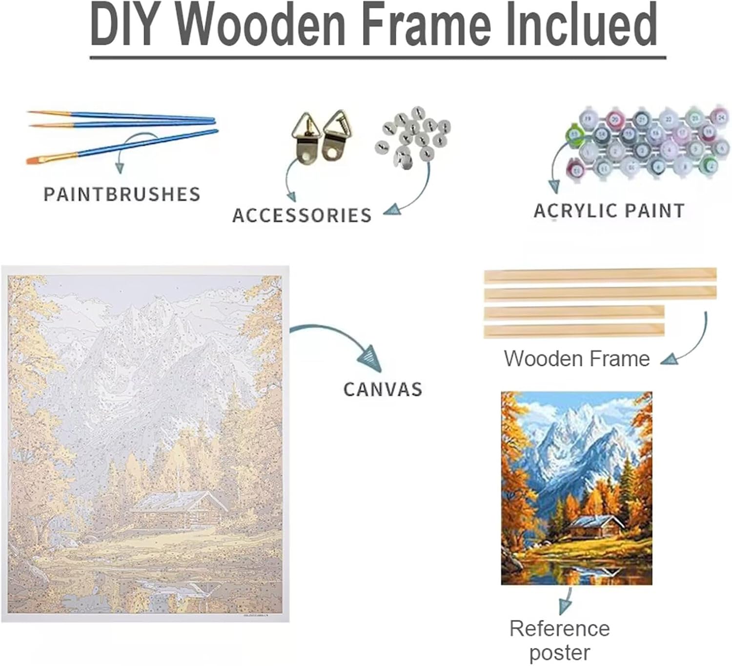 【Il Popolare Kit di Pittura con i Numeri per Adulti Include】1 tela stampata con texture 60x90cm (con cornice in legno), 1 set di colori acrilici, 1 set di pennelli (3 pezzi), 2 ganci e chiodi, 1 poster di carta di riferimento. Il kit contiene tutti gli strumenti necessari. I dipinti a olio con cornici in legno non sono preassemblati e richiedono il montaggio manuale. È sufficiente allineare i giunti e collegarli per un facile assemblaggio. 【Facile da Dipingere】I nostri kit di pittura per adulti con numeri sono molto facili da usare, basta seguire le istruzioni e creare un'opera d'arte straordinaria, che vi farà sentire come un pittore. Potete decidere l'ordine dei disegni in base alle vostre preferenze personali o seguendo i numeri. Dipingete secondo il vostro stile. 【Tela Speciale HD a Colori】A differenza della tela normale, utilizziamo una tela HD a colori. Colori brillanti, immagini e simboli chiari rendono più facile distinguere le aree digitali e dipingere per lunghi periodi di tempo non affatica gli occhi. I kit di pittura a olio digitale sono ideali per principianti, appassionati di pittura a olio e anziani. 【Divertiti con il Fai Da Te】Il kit per adulti Paint by Numbers aiuta a sviluppare la pazienza, alleviare lo stress e migliorare le emozioni. Quando accompagni la tua famiglia e i tuoi amici a completare il dipinto con i numeri, puoi provare un senso di soddisfazione. Paint by Numbers è un'ottima scelta per aiutarti a migliorare la coordinazione dei colori. Inoltre, può migliorare la tua intelligenza e la tua sicurezza. 【Decorazione Perfetta e Regalo】Una volta completato questo meraviglioso dipinto a olio, illuminerà l'intera stanza. Il dipinto finito può essere un'ottima decorazione per la tua casa, l'ufficio, l'hotel e il ristorante. Dipingere con i numeri è un regalo perfetto per genitori, amanti, amici, bambini in occasione di compleanni, matrimoni, feste, Natale, ecc. È un'ottima scelta come regalo unico, che piacerà anche agli anziani.