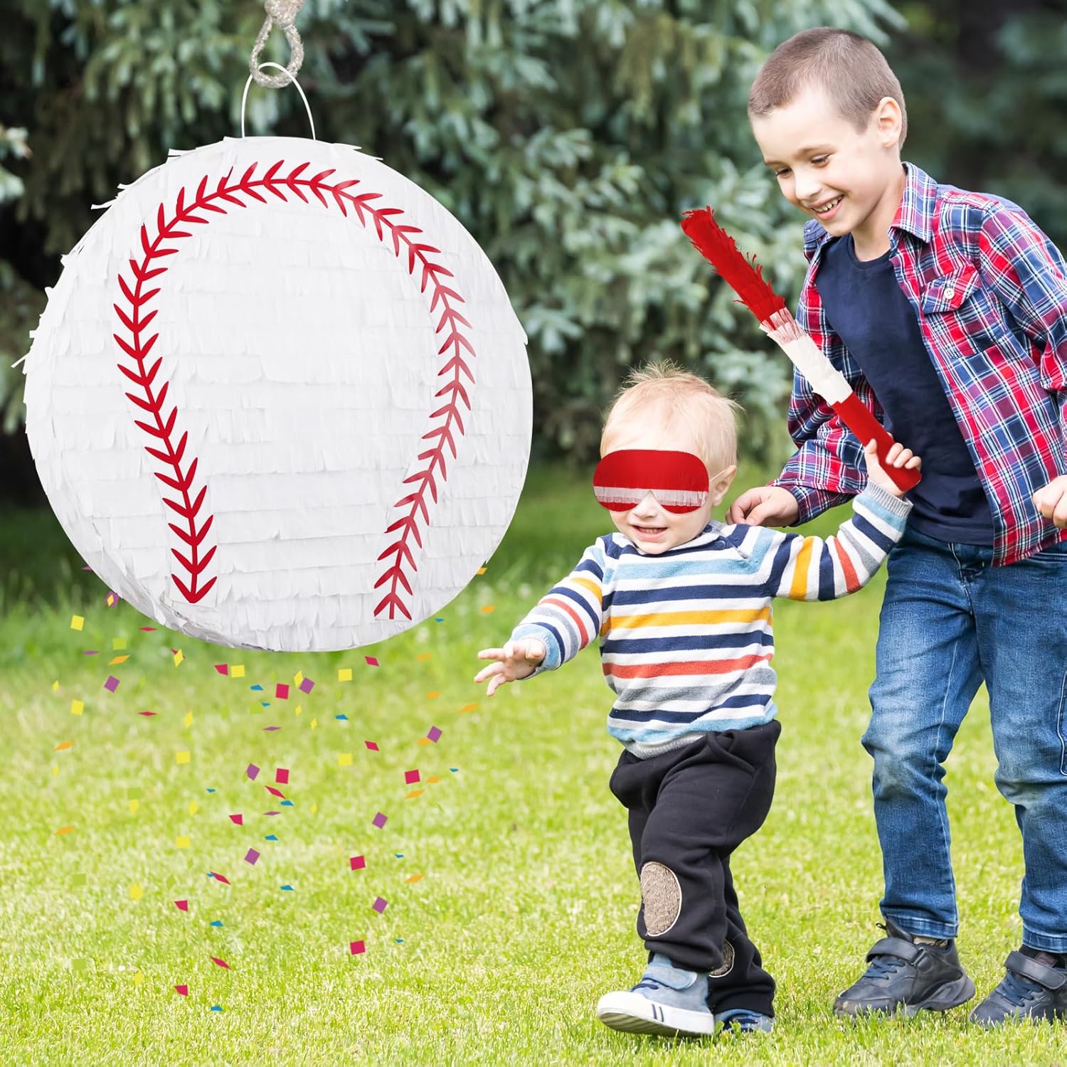 La confezione include: 1 pignatta da baseball, 1 bastone da pinata e 1 benda, che porterà un sacco di divertimento ai tuoi bambini e ospiti alle feste Come si gioca: la pignatta sportiva ha un foro prefabbricato nella parte superiore che si può facilmente riempire con caramelle, coriandoli o bomboniere semplicemente tagliando piccole aperture; poi indossando benda, i bambini possono a turno colpire la pignatta con una mazza fino a quando i regali all'interno non vengono rilasciati e i vincitori riceveranno premi Dimensioni adeguate: la nostra pinata da baseball misura 39,9 x 31,8 x 7,6 cm e ha un robusto anello per appendere nella parte superiore, in modo da poterlo appendere a soffitti, pareti, porte, scale, alberi, finestre, cortili, tavoli da dessert o metterlo ovunque tu voglia Ampie applicazioni: decorare e iniziare la festa, adatto per decorazioni per feste a tema baseball, forniture per feste sportive, decorazioni per feste di compleanno per ragazzi, giochi di carnevale, eventi scolastici, oggetti di scena per foto per feste, ecc., bambini e adulti possono divertirsi a rompere la pignatta Qualità affidabile: la nostra pignatta è realizzata in cartone, stampata su entrambi i lati e decorata con adesivi, colori vivaci, non sbiadisce o si deforma facilmente, robusta e affidabile, che consente di giocare più a lungo e tutti hanno la possibilità di colpire la pignatta