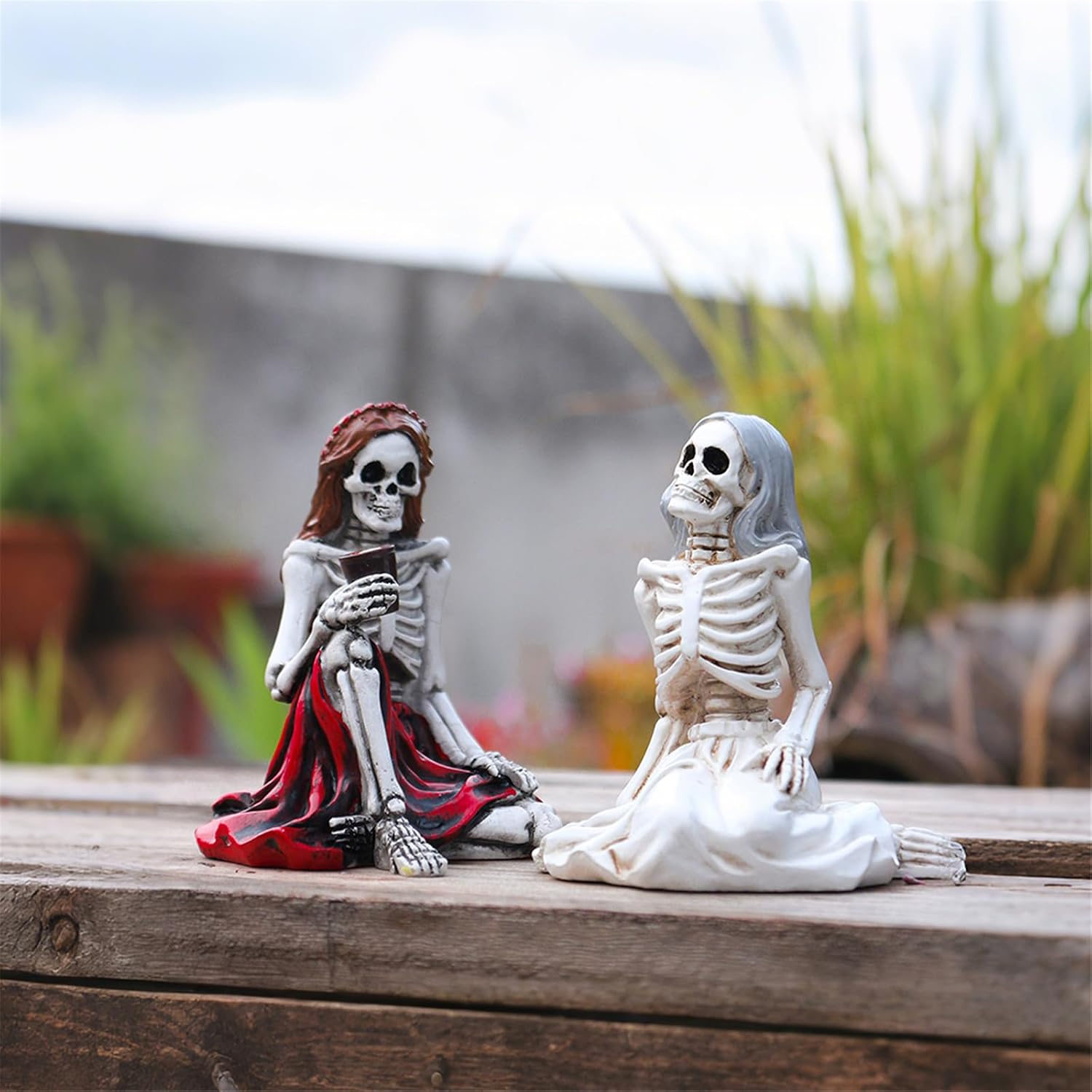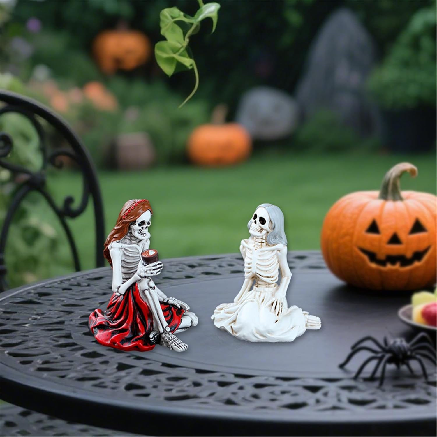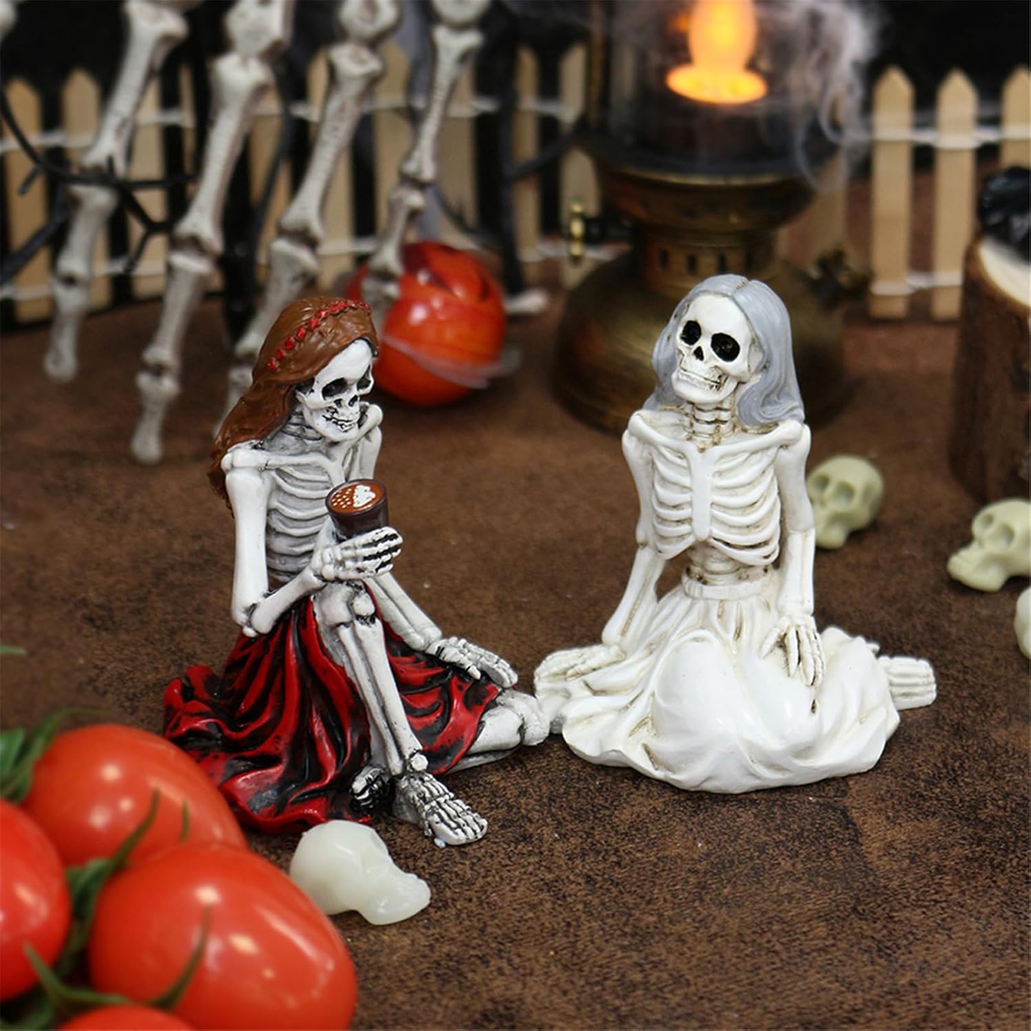 Migliora le tue decorazioni di Halloween con questa statuetta di ragazza scheletro dettagliata in sequenza Questi versatili ornamenti di Halloween in resina fungono anche da pezzi decorativi da collezione, combinando fascino spaventoso con un potenziale espositivo di anni per interni horror Perfetto per gli appassionati di horror e celebrazioni di Halloween per famiglie, in particolare famiglie con bambini o animali domestici che non cercano un accento horror fragile Da esporre come inquietante centrotavola su console da ingresso, librerie o tavoli da festa per trasformare istantaneamente salotti, uffici o allestimenti di Halloween all'aperto Realizzato con resine di alta qualità, questo leggero ma robusto la decorazione presenta disegni strutturati realistici e resistenti ai graffi e offre una manipolazione sicura come fragili ornamenti in ceramica