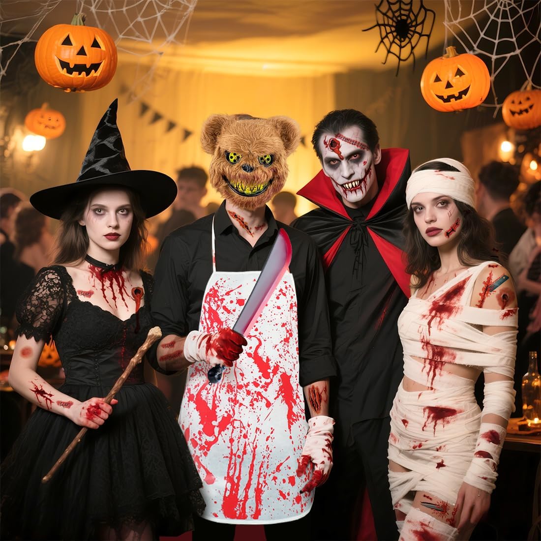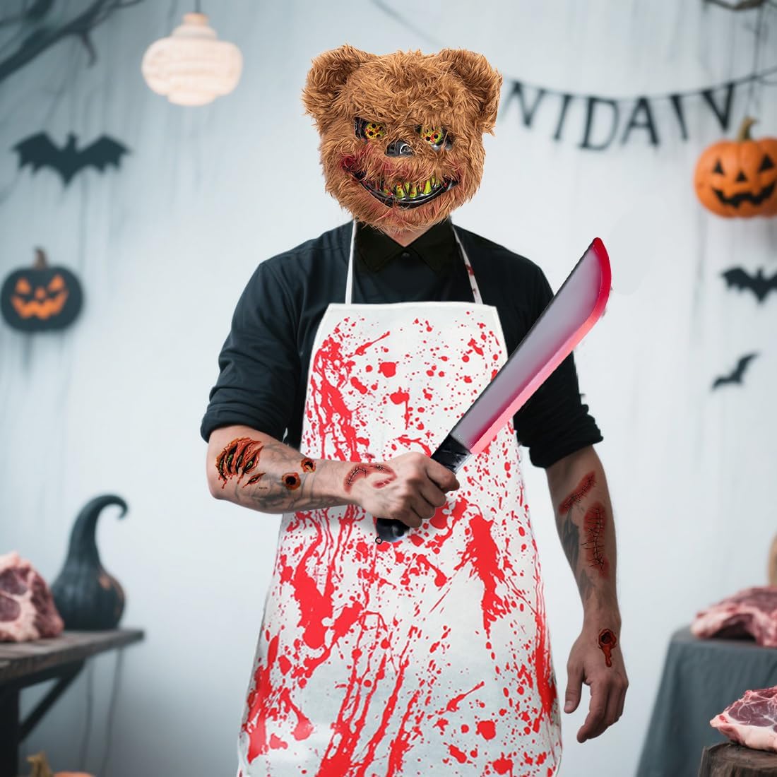 Dieses Kostüm ist nichts für halbe Sachen. Die blutige Bärenmaske von TaleMoon sitzt irgendwo zwischen Trash, Grusel und einem schrägen Sinn für Humor, genau dort, wo Halloween am meisten Spaß macht. Die Maske riecht anfangs leicht nach Kunststoff, verliert das aber nach kurzem Auslüften. Sie ist flexibel genug, um sich gut an das Gesicht anzupassen, und mit dem Rest des Sets entsteht tatsächlich ein erstaunlich stimmiger Gesamteindruck. Zur Ausstattung gehören eine Machete aus weichem Plastik, eine blutverschmierte Schürze und kleine Narben-Tattoos, die den Look abrunden. Die Tattoos halten besser, als ich erwartet hätte, und die Machete wirkt aus der Ferne erstaunlich überzeugend. Näher betrachtet sieht man natürlich, dass alles harmlos ist. Aber das gehört bei einem solchen Kostüm zum Spiel. Für eine Halloweenparty oder ein dunkles Cosplay ist das Set ideal: leicht, bequem und schnell angezogen. Es ist kein Kostüm für Ästheten, sondern für jene, die Spaß daran haben, den eigenen Schatten einmal durchschimmern zu lassen. Kurz gesagt: ein sauber gemachter Horrorspaß mit Augenzwinkern. Wer es schafft, dabei ernst zu bleiben, hat den Sinn von Halloween wohl nie ganz verstanden.