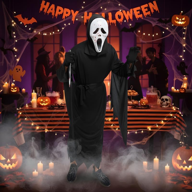 Es un set de disfraz que ofrece un aspecto perfecto para Halloween, fiestas de disfraces o eventos de cosplay. La máscara de plástico rígido es resistente y duradera, con ventilación adecuada en la nariz, boca y ojos, lo que permite ver y respirar cómodamente durante horas de uso. Las salpicaduras rojas simulan sangre de forma realista, aumentando el efecto espeluznante. El set incluye un cuchillo ensangrentado de juguete que completa el look. A distancia parece bastante realista y la pintura roja le da un toque impactante, ideal para asustar a amigos o familiares. La máscara se combina fácilmente con una capa o tela negra, lo que permite cubrir el cuerpo y conseguir un disfraz completo de terror. Es un producto apto para niños (lo recomiendo a partir de 9 años aprox), y adultos, con tamaño universal y ajuste cómodo. Está fabricado en materiales de buena calidad, ofreciendo un buen equilibrio entre realismo, comodidad y durabilidad. En definitiva: Es un set de máscara y cuchillo de terror que cumple su función de manera efectiva. Perfecto para Halloween o fiestas temáticas, fácil de combinar con ropa negra o capas. Por su relación calidad-precio, es una opción muy recomendable para quienes buscan un disfraz rápido, aterrador y completo. Mi valoración es de 4 ????. Espero que mi reseña sea de ayuda. Saludos. Atentamente. Miquel B. ????
