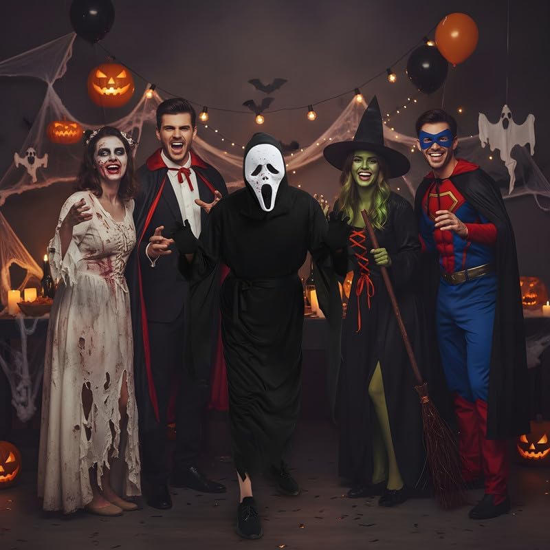 Questo articolo è un classico dei travestimenti horror che vanno bene sia per Halloween che per delle feste casalinghe a tema. Proprio la classicità di questo costume permette di completare la maschera semplicemente vestendosi di nero o con una leggera tunica i materiali sono solidi e la maschera ben fatta. La retina permette di vedere bene, l’unica cosa un po’ scomoda è la parte del naso ma per il resto è leggera e ariosa senza essere pesante o opprimente. Secondo me è veramente il classico delle maschere che va sempre ed è costruito in modo tale da occupare poco spazio e essere utilizzata al bisogno facendo sempre una bella figura.