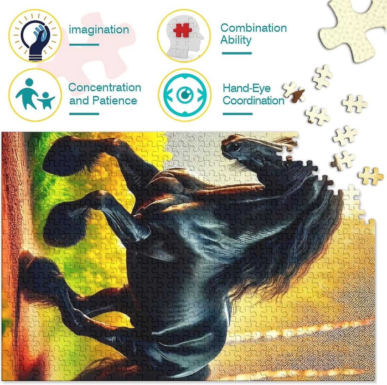 🌸GIOCHI PER ADULTI: una sfida emozionante da regalare a tutti li appassionati di puzzle e amanti dell'arte, ideale per uomo, donna o ragazzi; i puzzle aiutano a esercitare la memoria, migliorano la concentrazione e stimolano l'intuizione 🌸QUALITÀ PREMIUM: il massimo del divertimento con prodotti di altissima qualità in termini di materiali, motivi e design; realizzati in legno tagliati con fustelle fatte a mano, per un risultato impeccabile 🌸Buon regalo: il Animals puzzle finito misura 38x26cm/1000pcs una volta completato. I migliori regali per ragazzi e ragazze dai 14 anni in su per compleanni o festività (Natale, Halloween, Ringraziamento, ecc.) 🌸Concediti una piacevole pausa relax! La nostra linea di puzzle da Horse 1000 pezzi è il regalo perfetto per chi ama ritagliarsi un momento di svago e di relax mettendo alla prova le proprie abilità logiche e di concentrazione 🌸I nostri Puzzle ti offrono un'ampia scelta d'immagini capace di soddisfare i gusti di tutti: grazie alla qualità dei materiali riciclati, la robustezza e resistenza dei singoli pezzi insieme alla brillantezza dei colori, ti garantiamo un risultato impeccabile e privo di riflessi