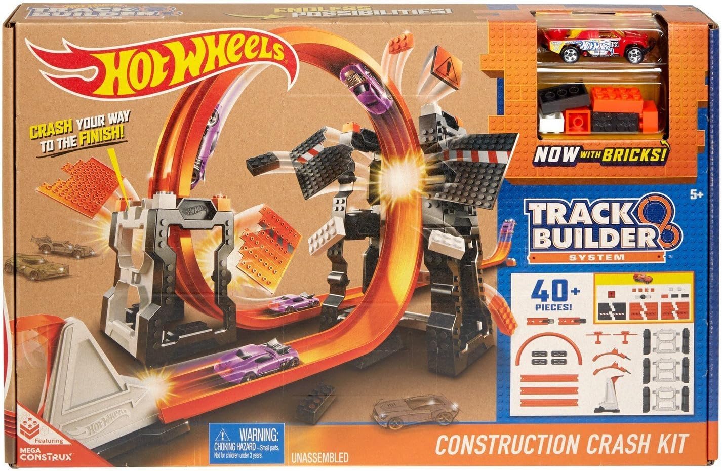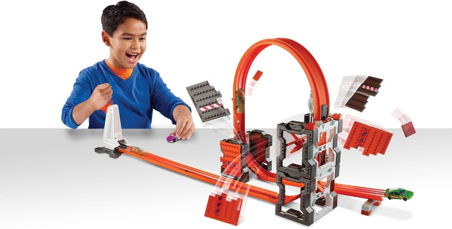 Nuova pista molto innovativa che combina la velocità dei veicoli e la costruzione con i mattoncini Una pista completamente modulare per poter sempre far esplodere i mattoncini inclusi nel pack Il pack include una linea retta, un Looping, un lanciatore e un mattoncino per costruire diverse configurazioni di torri per farle esplodere ogni volta