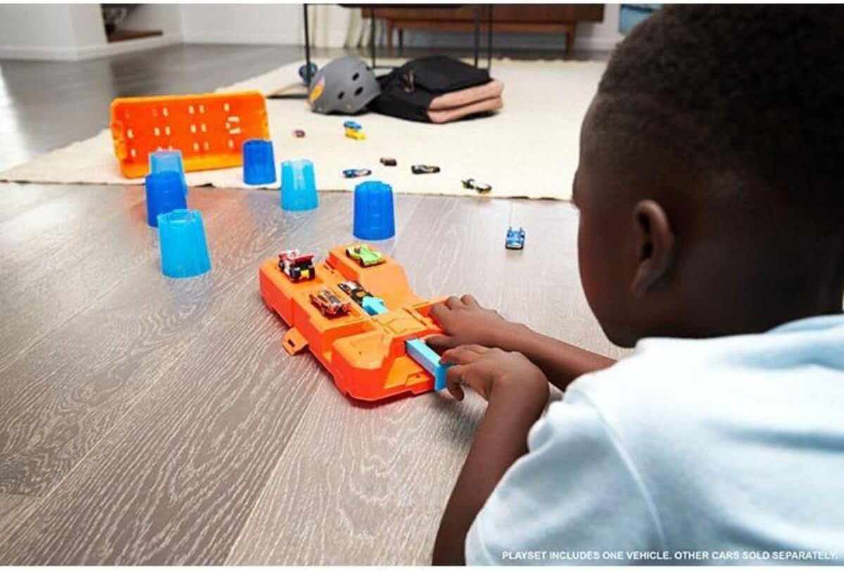 Con la pista Hot Wheels Track Builder è semplice e rapido passare da un’acrobazi; a un’altra Questo set di birilli per bambini è ottimamente stimolante e permette di sperimentare nuovi stunt Gioco da 6 anni in su, pratico da conservare e portare in giro per divertirsi con gli amici Con Hotwheels Track Builder si può comporre la pista come si vuole per creare un mondo di acrobazie con infinite opzioni Include 1 contenitore con barili impilabili, primo lanciatore integrato nel coperchio, 4 componenti per le acrobazie e 1 macchinina Hot Wheels