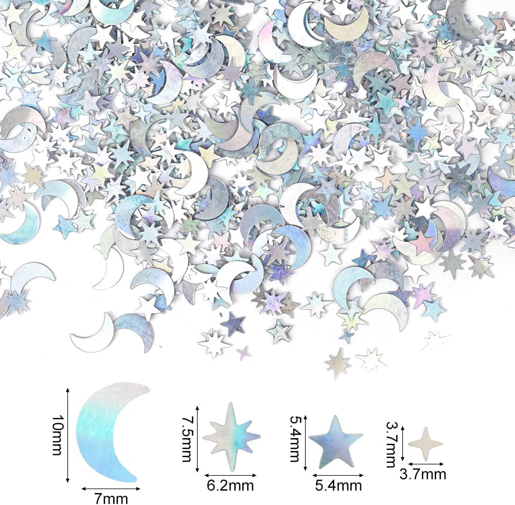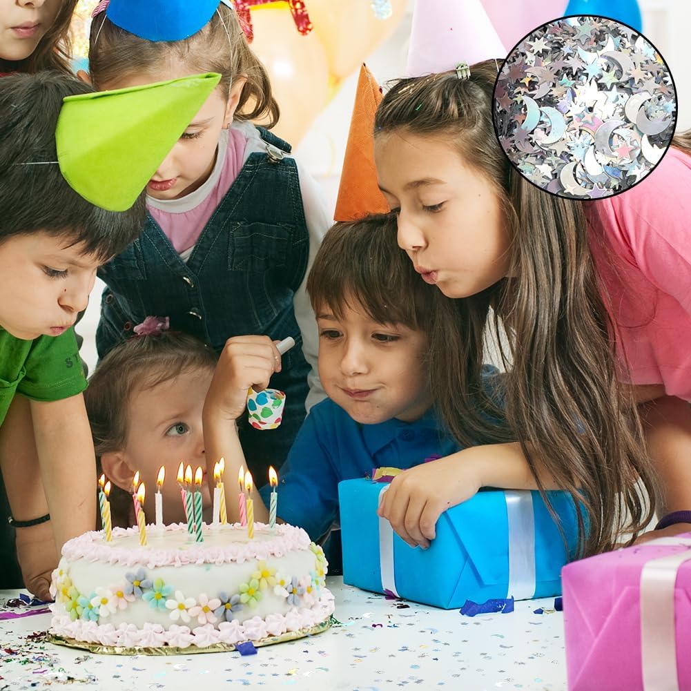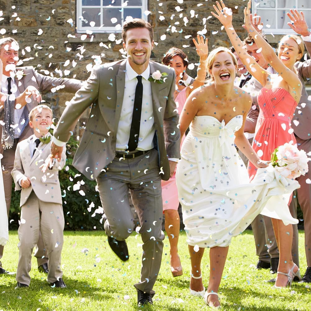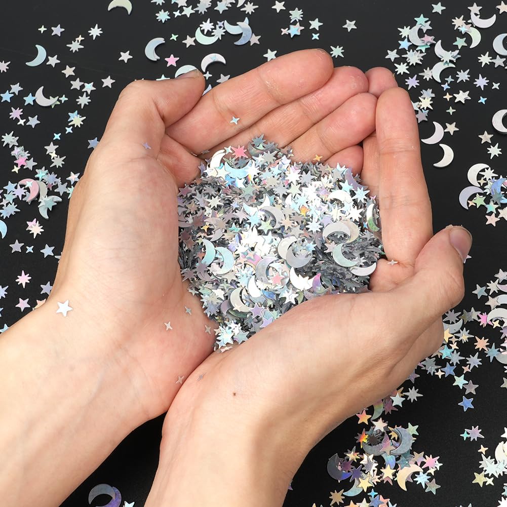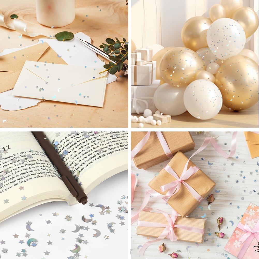 【Decorazione di coriandoli colorati】 Questi coriandoli offrono una varietà di colori e forme, come stelle, lune, ecc., in diverse dimensioni per soddisfare le diverse esigenze di decorazione. Che si tratti di un matrimonio, una festa di compleanno o una festa, puoi trovare la decorazione per l'atmosfera adatta.,Dimensioni dei coriandoli per la decorazione della tavola: una scatola contiene tre sacchetti, ciascuno contenente 15 grammi di coriandoli. Luna: 10 mm, stella a cinque punte: 5,4 mm, stella a quattro punte: 3,7 mm, stella a otto punte: 7,5 mm. Queste carte colorate possono essere combinate con altri accessori per feste per creare un'atmosfera di festa indimenticabile.,Alta qualità e sicurezza: i coriandoli sono realizzati in materiale PVC, di piccole dimensioni e leggero e con una superficie liscia e lucida che può riflettere colori incantevoli alla luce. È robusto, durevole, resistente agli strappi e impermeabile. (Nota speciale: il prodotto contiene piccole parti. Si prega di tenerlo fuori dalla portata dei bambini per garantire un uso sicuro). Allo stesso tempo, è anche un'ottima scelta per il fai-da-te, la decorazione delle unghie e gli accessori per il trucco. 【Adatto a molte occasioni】 Che si tratti di Natale, Capodanno, festa di compleanno o matrimonio, i coriandoli possono aggiungere un'atmosfera felice alla tua celebrazione. Si coordina facilmente con altri articoli per feste per creare un'esperienza di celebrazione memorabile ed elegante