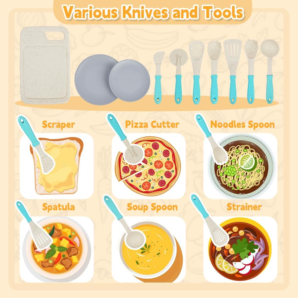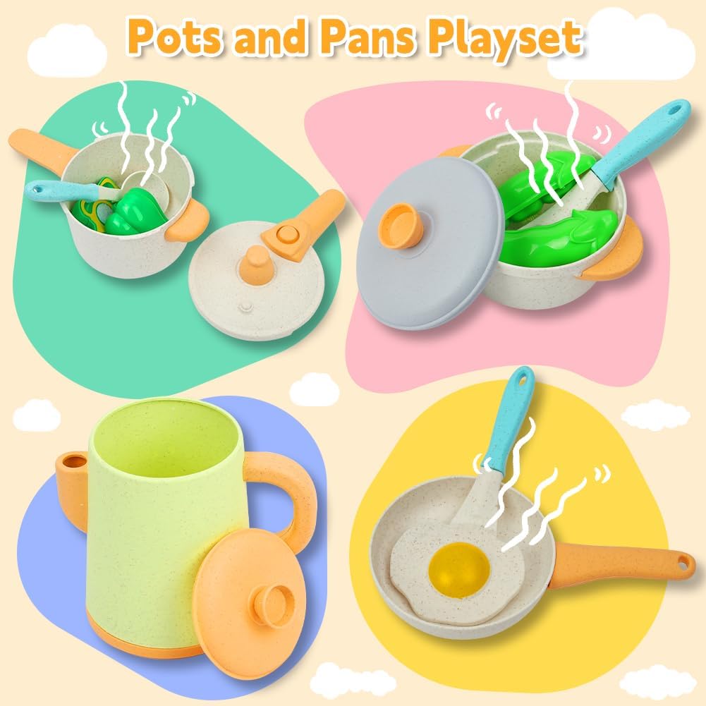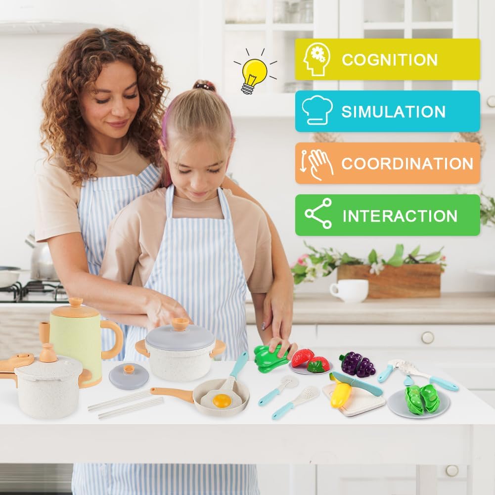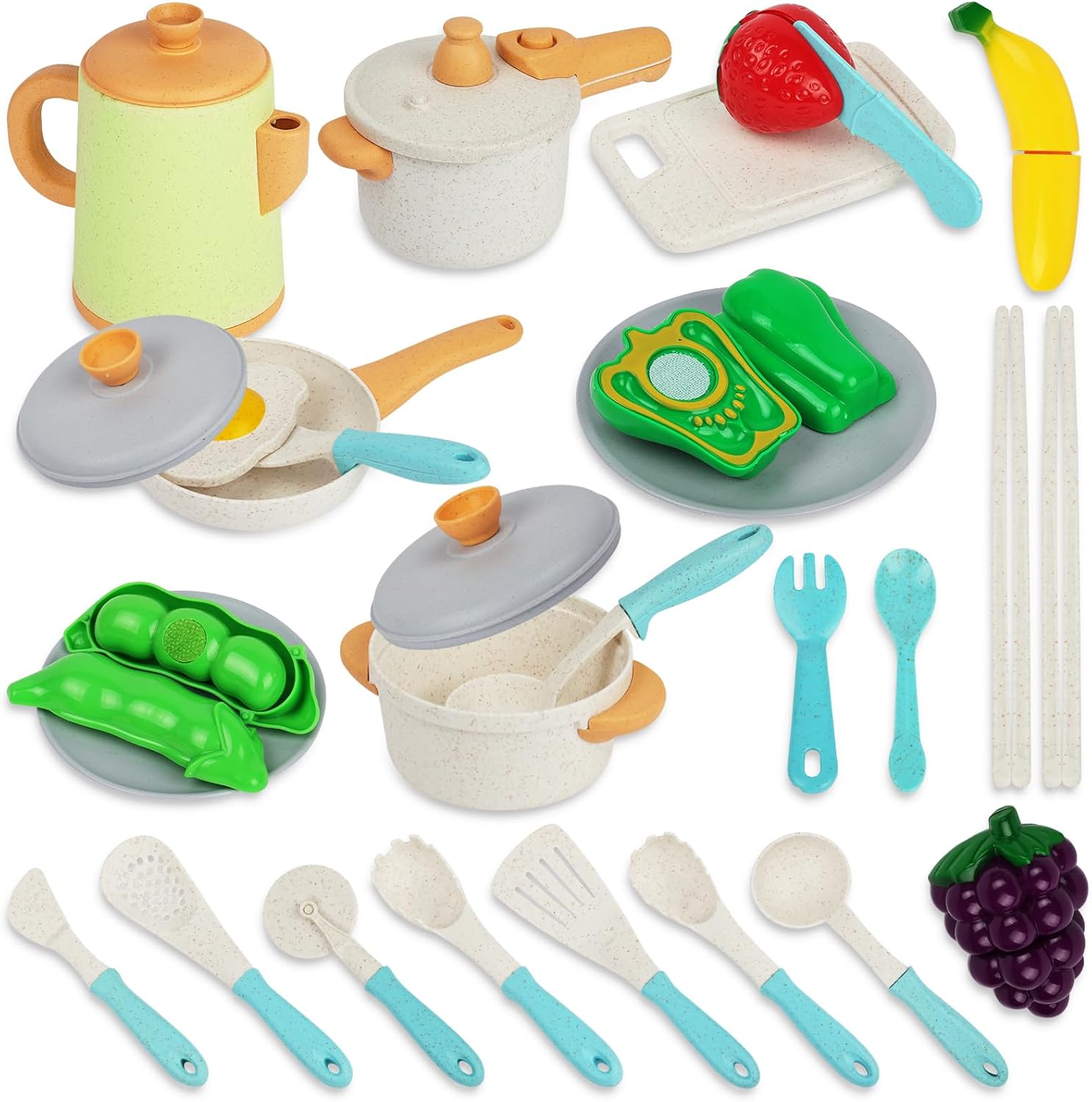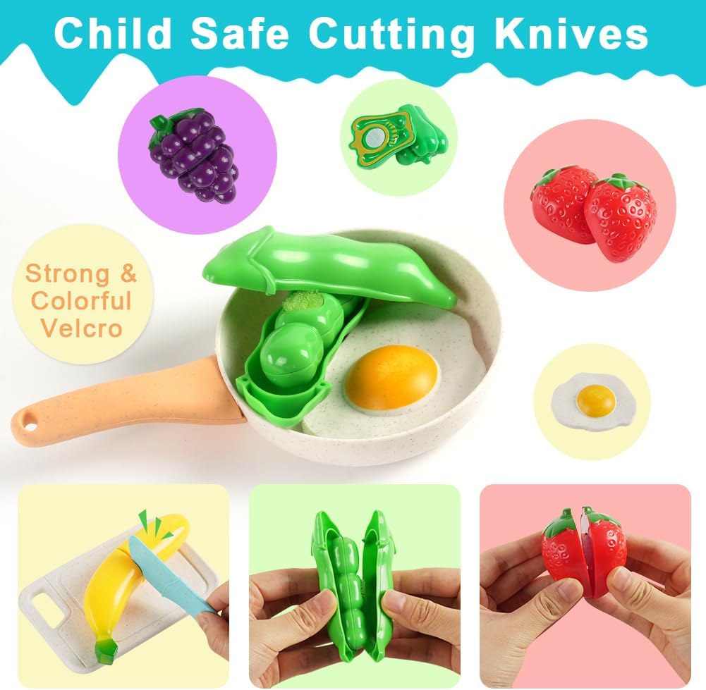 🍳🍳【26 pezzi di giocattoli da cucina per bambini】Divertente set di giocattoli da cucina comprende bollitore, cuociriso, pentola a pressione, padella, tagliere, uova, piatto grande, piatto piccolo, fragola, uva, banana, peperone verde, pisello, cucchiaio, coltello e forchetta 1 paio, 6 accessori cucchiaio, 2 paia di bacchette. Una varietà di giocattoli alimentari per far giocare i bambini, possono essere montati o smontati e porteranno un divertimento senza fine ai bambini. 🥦🥦 【Materiale sicuro】 Una varietà di giocattoli alimentari per bambini dai colori vivaci sono realizzati in plastica atossica ed ecologica. Più ecologico, più durevole e sicuro per i bambini rispetto alla plastica tradizionale. Aspetto liscio senza spigoli vivi. 🍌🍌【Design Realistico】Le pentole e le padelle hanno un design realistico con un coperchio apribile e un design di supporto sul manico, e la pentola a pressione può essere aperta o bloccata ruotando il coperchio, riproducendo veramente l'ambiente di cottura reale. Ispira l'interesse dei bambini per la cucina! 🥘🥘【Vari modi di giocare】La frutta e la verdura all'interno del giocattolo da cucina sono collegate con il velcro e i bambini possono usare un coltello per tagliare la frutta e la verdura a metà e poi rimetterle insieme; cuocere e friggere il cibo in pentole o padelle; Metti il cibo su un piatto, fai finta di goderti il pasto, ecc. Una varietà di accessori da cucina per soddisfare le esigenze di gioco dei bambini. 🎁🎁【Giocattoli educativi precoci】Una varietà di vivaci cibi per giochi di ruolo, perfetti per l'apprendimento, la classificazione, l'abbinamento e la selezione del cibo. Migliora l'abilità manuale, la coordinazione occhio-mano e le capacità motorie. Puoi anche giocare con amici o genitori per sviluppare abilità comunicative e sociali nelle interazioni con genitori e amici.