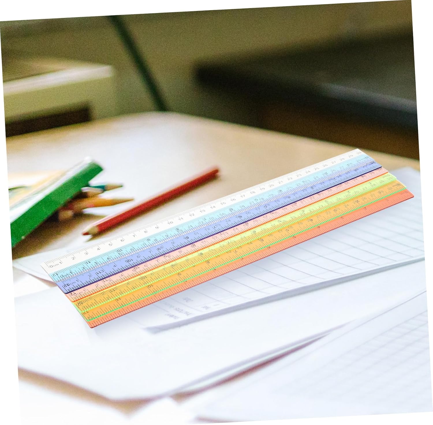 Righello di plastica per dipingere: non solo è bello da vedere, ma la sua consistenza e il suo peso sono progettati per essere perfetti tatto, righelli per studenti Righelli per comodi: il righello dritto colorato può essere utilizzato anche come segnalibro per aiutarti a continuare a leggere facilmente, righelli di plastica multifunzione Accessorio per studenti: adatto anche agli studenti per esercitarsi e ripassare prima e durante gli esami, il nostro righello colorato è adatto a famiglie, aule, uffici e biblioteche, righelli per pittura Righelli colorati: il righello di misurazione è perfetto per rilievi, mappe, progettazione e utilizzo da di insegnanti, studenti, ingegneri, ecc., righello portatile per Righelli portatili: il righello di misurazione può aiutare molto il tuo e renderlo più appassionato all'apprendimento, righelli con centimetri