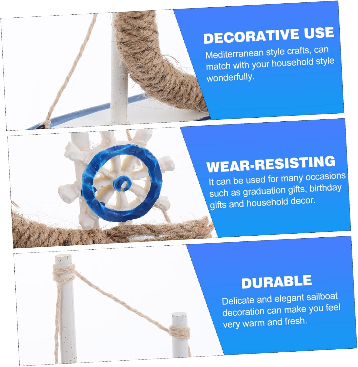 Decorazione a forma di barca a vela: ideale per la scrivania di casa, il tavolo dell'ufficio o per la decorazione di vetrine di negozi, delicata e speciale, decorazione a forma di barca a vela Decorazioni a tema nautico - artigianato in stile mediterraneo, si abbinano perfettamente allo stile della tua casa, barca a vela in miniatura Modello di barca: un bel per la tua famiglia o i tuoi amici, piacerà molto, modello di barca a vela Decorazioni con barche a vela: rendi la tua vita più semplice e felice, illumina la tua stanza, decorazioni con barche a vela Decorazione per barca a vela: delicata ed elegante decorazione per barca a vela che trasmette una sensazione di calore e freschezza, timone per decorazioni da spiaggia