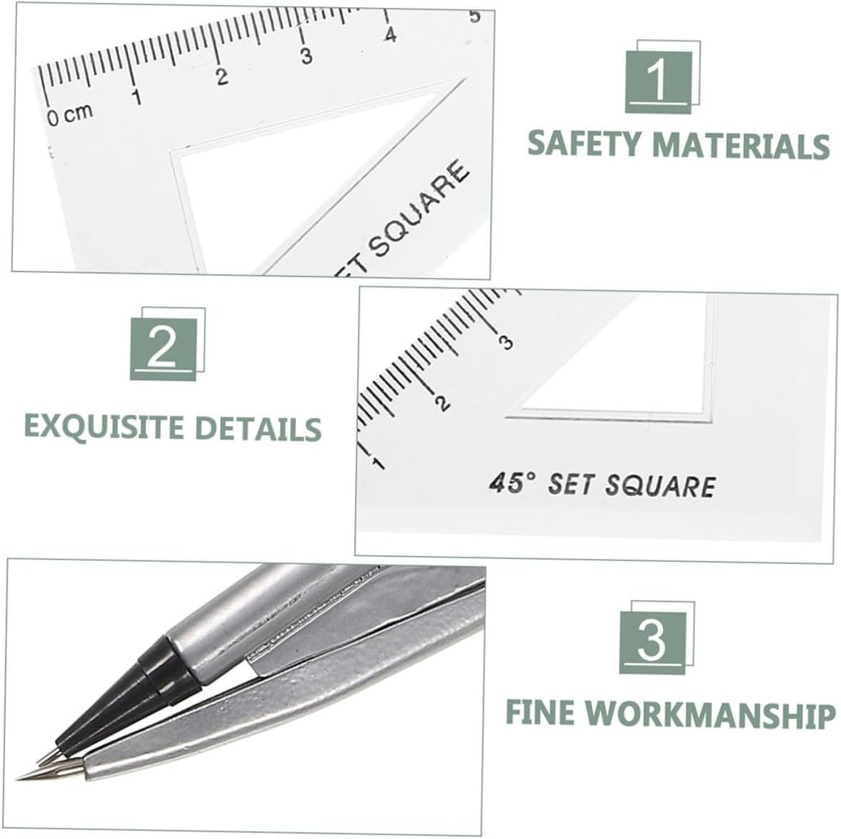 Set completo di compasso: questo set include più righelli e un goniometro, fornendo una soluzione completa per tutte le tue esigenze di disegno e misurazione, compasso per la matematica, disegno con compasso E affidabile: questo set è progettato per durare, rendendolo una scelta affidabile per l'uso quotidiano in vari ambienti, bussola per lavorazione del legno, bussola Buona durata: questo set è costruito per resistere all'uso regolare, rendendolo una scelta affidabile per studenti e professionisti, compasso da disegno, kit da disegno Pratica gomma inclusa: il set è dotato di una gomma, che facilita la correzione di eventuali errori e mantiene il lavoro pulito e preciso, materiale scolastico, bussole per Gomma integrata: con una gomma integrata, questo set semplifica la correzione degli errori, assicurando che i tuoi disegni rimangano puliti e precisi, forniture per l'architettura, goniometro per la scuola