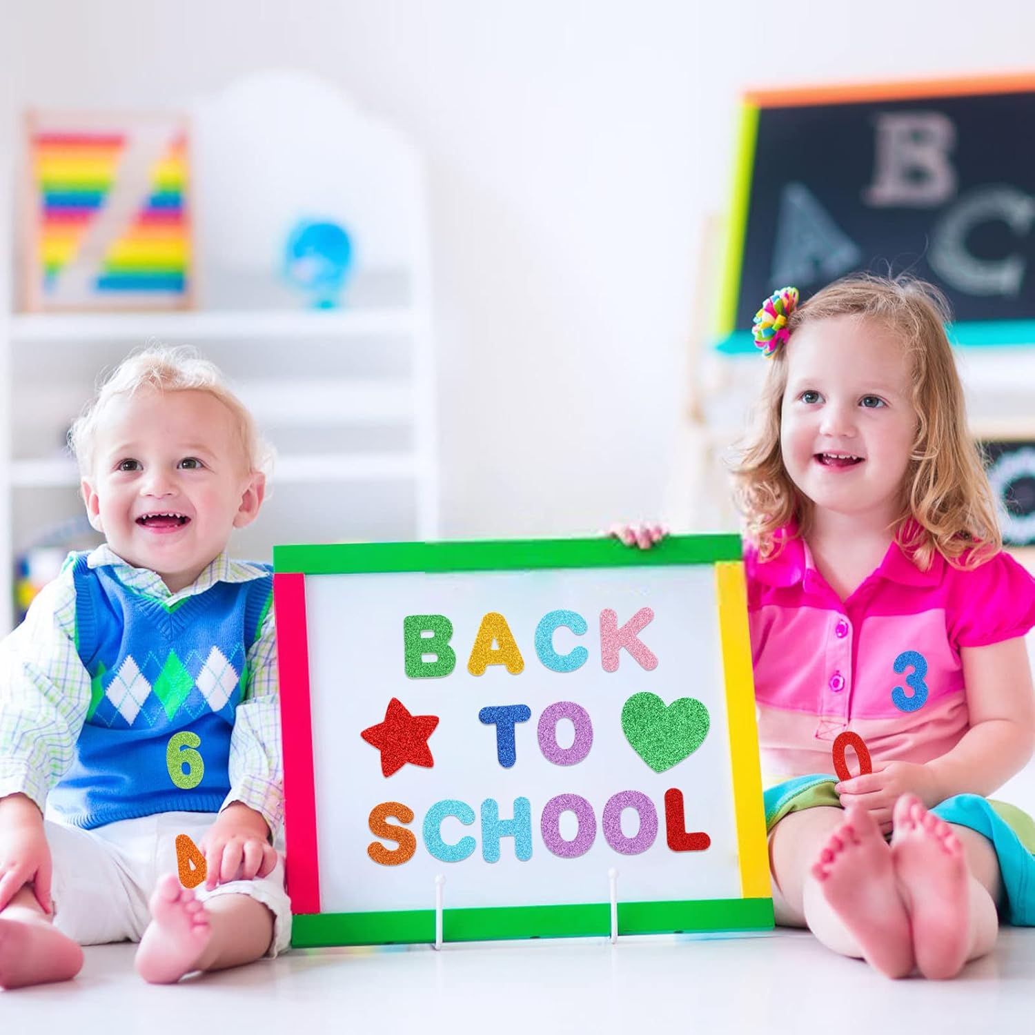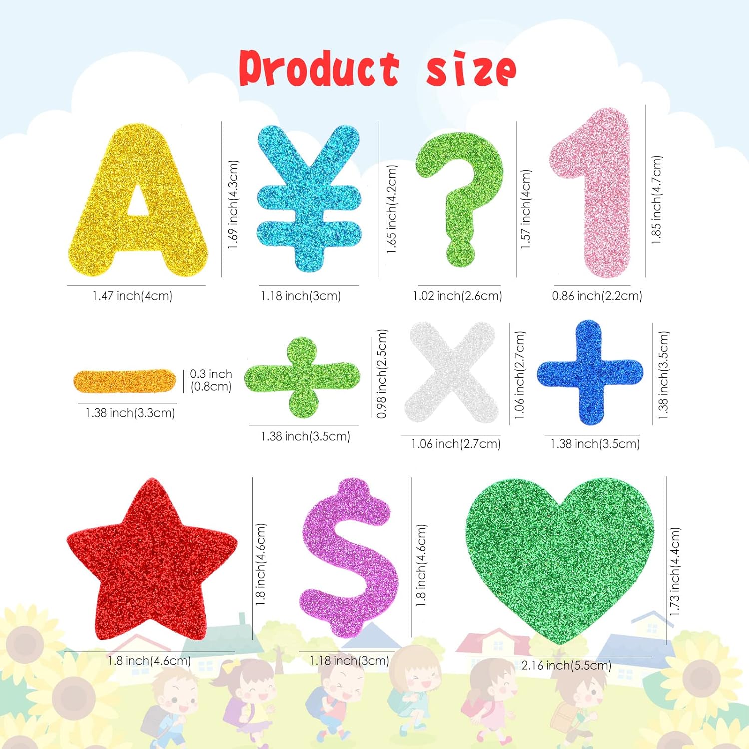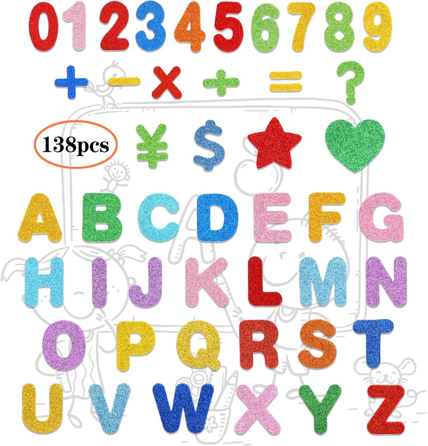 Set di adesivi con lettere glitter: riceverai 138 pezzi di adesivi autoadesivi con lettere in gommapiuma, inclusi 3 set di adesivi con lettere glitter dalla A alla Z, adesivi con numeri glitter da 0 a 9, addizione, sottrazione, moltiplicazione, divisione, punto interrogativo, simbolo di valuta, adesivi a stella e a cuore. Possono aiutare i bambini a riconoscere e imparare lettere e numeri. Set di decorazioni per l'iscrizione a scuola per ragazzi e ragazze: i bambini possono utilizzare queste lettere autoadesive per adesivi di introduzione scolastica in schiuma per evidenziare i compiti e i libri scolastici, aumentare l'interesse dei bambini per l'apprendimento, aggiungere parole alle frasi o completare formule di calcolo matematico. E i grandi numeri autoadesivi in gommapiuma conferiscono un aspetto 3D, perfetto per creare biglietti, album di ritagli, borse da festa, decorazioni per il rientro a scuola, ecc. Materiale sicuro: questi adesivi con lettere glitterati per bambini in età scolare sono realizzati in schiuma EVA di alta qualità, circa 4 cm di lunghezza, 4 cm di larghezza e 2 mm di spessore, leggeri, morbidi, spessi e sicuri, puoi usarli con sicurezza. E i colori di queste lettere sono ordinati, non fissati, scintillanti e lucenti per farle sembrare bellissime! Facile da usare: i nostri adesivi glitter decorativi per il rientro a scuola sono autoadesivi, molto facili e comodi da usare. Basta staccare la carta bianca sul retro, facile da attaccare e utilizzare, adatta a superfici lisce e pulite. Non è necessario acquistare colla aggiuntiva, può anche essere fissata saldamente. Acquista con fiducia: in caso di problemi, inviaci semplicemente un'e-mail sui nostri adesivi con lettere glitter autoadesivi con lettere in gommapiuma. Per ulteriori auguri per l'inizio della scuola, striscioni per l'inizio della scuola, decorazioni per striscioni con ghirlande per l'iscrizione alla scuola, presentazioni per la scuola, decorazioni per l'inizio della scuola, palloncini per l'iscrizione alla scuola, occhiali per bambini in età scolare, accessori fotografici per l'introduzione alla scuola, visita la vetrina di Howaf.