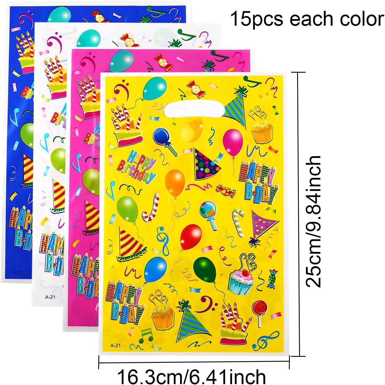 Riceverai 60 sacchetti per compleanno per bambini, sacchetti per feste, sacchetti regalo, sacchetti per compleanno, sacchetti per feste, sacchetti per caramelle per compleanno per bambini, colorati e luminosi, perfetti per qualsiasi tema di festa. I diversi colori saranno festosi e accattivanti. Design in stile classico in diversi colori: viola, azzurro spazio, avorio, giallo, 4 diversi colori di sfondo, 15 pezzi per ogni colore, stampati con palloncini di buon compleanno, cappelli, caramelle, cupcake, candele, sacchetti di buon compleanno per una bomboniera, ideali per regali piccoli e leggeri. Ogni dimensione del sacchetto di caramelle: 6,5 L x 10 A pollici, realizzata in plastica di alta qualità, abbastanza robusta per i sacchetti di bomboniere per molti bambini, dimensione perfetta per dolcetti, dolci, gioielli per bambini, giocattoli e altri piccoli regali. Questi sacchetti colorati e luminosi sono ottimi sacchetti regalo per il compleanno dei bambini, sacchetti per feste per bambini, sacchetti per compleanno da regalare, confezioni, sacchetti per compleanno per bambini. Acquista con fiducia, in caso di problemi inviaci un'e-mail per il rimborso o la sostituzione. Ci impegniamo a fornirti un servizio post-vendita soddisfatto al 100%.