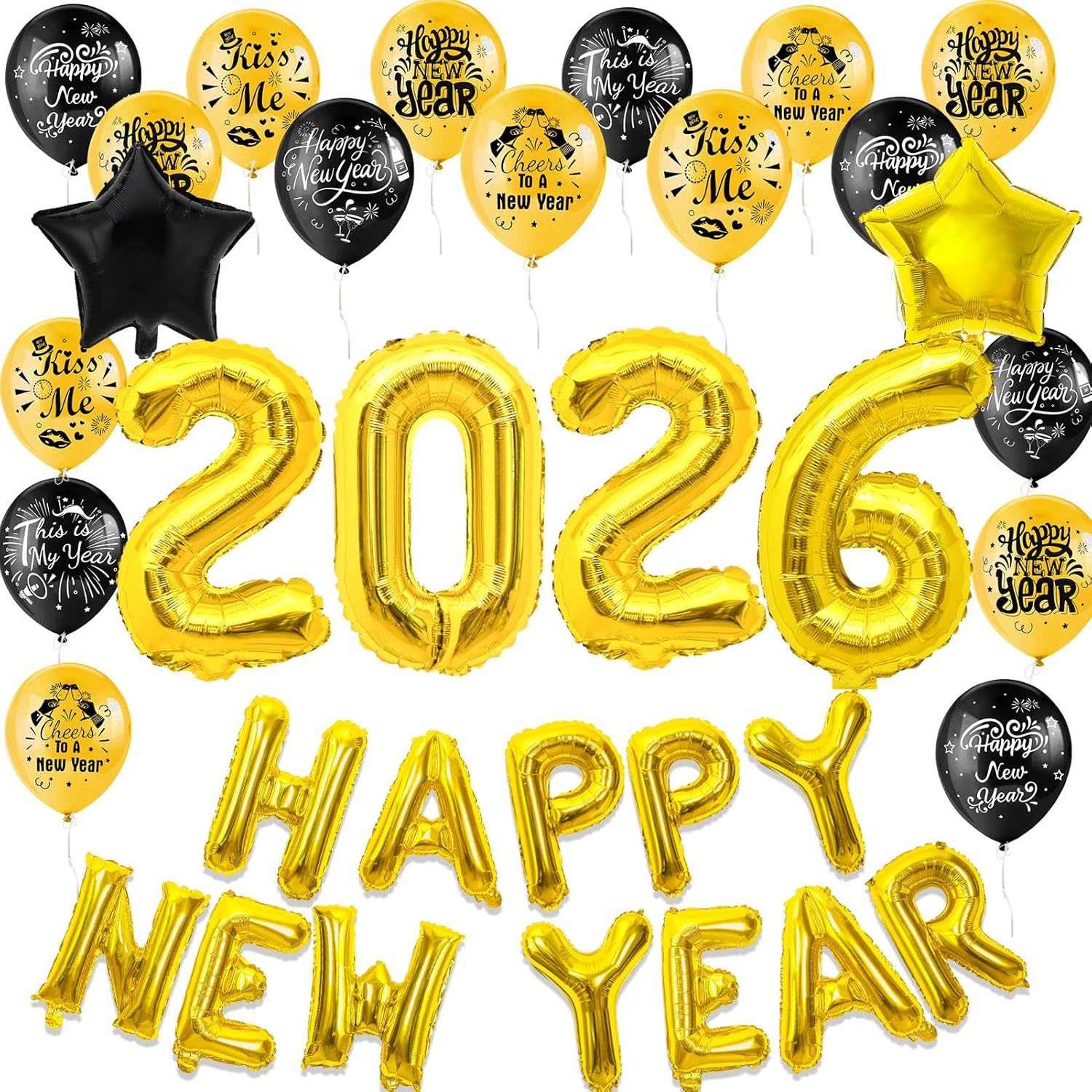Decorazione di Capodanno 2026: questi palloncini decorativi di Capodanno 2026 neri e dorati sono dotati di kit per feste di Capodanno 2026. La decorazione di palloncini 2026 è realizzata in lattice e foglio di alluminio spesso, non facile da scoppiare, non tossico e resistente. Ma a causa del materiale del prodotto, il palloncino avrà un leggero odore, il che è normale. I palloncini in lattice di Capodanno possono essere riempiti con aria o elio. Facile da usare: i palloncini Happy New Year 2026 sono facili da montare. Con i suoi colori vivaci e design eleganti come baciami, questo è il mio anno, felice anno nuovo, brindisi al nuovo anno, ecc., queste bellissime forniture per feste di Capodanno sono tutto ciò di cui hai bisogno per la tua festa migliore! Crea uno splendido centrotavola per la festa e sfondi fotografici per la festa di Capodanno. Ampia applicazione: questi palloncini per decorazioni di Capodanno 2026 Banner kit di decorazioni per Capodanno di felice anno nuovo sono ideali per casa, ufficio, scuola, bar, negozio. Altri oggetti di scena per cabine fotografiche di Capodanno 2026, bomboniere per feste di Capodanno, cappello per fascia per capelli, decorazione per Capodanno 2026, ecc., Visita il negozio Howaf. Acquista con fiducia, sei coperto dalla garanzia di rimborso o sostituzione. Se non sei soddisfatto del tuo acquisto, inviaci un'e-mail, il nostro set di palloncini decorativi illuminerà tutte le tue celebrazioni per tutto il 2026, creando l'ambientazione più straordinaria per i tuoi ricordi indimenticabili.
