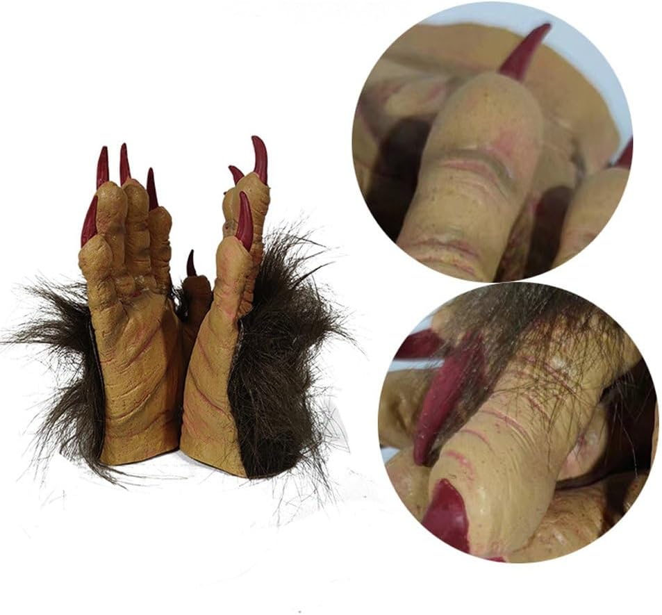 Ampiamente usato: lo spirito natalizio raggiungerà il suo apice quando indosserai guanti spettrali, ti godrai le celebrazioni festive, tu e i tuoi amici vi divertirete sicuramente! Materiale: i guanti Wolf sono realizzati in lattice, squisitamente realizzati e sembrano realistici, elastici e resistenti. Applicazione: giocattolo perfetto per feste in costume, feste in costume, Halloween, feste a tema horror, balli in maschera, ecc. Realistici: i guanti sembrano reali e hanno artigli all'estremità di ogni dito, conferendo loro un aspetto brutale. DESIGN - Guanti realistici con artigli per zampe, mani finemente strutturate e unghie lunghe spaventose, facili da indossare e da togliere, una certa elasticità, adatti a tutti.