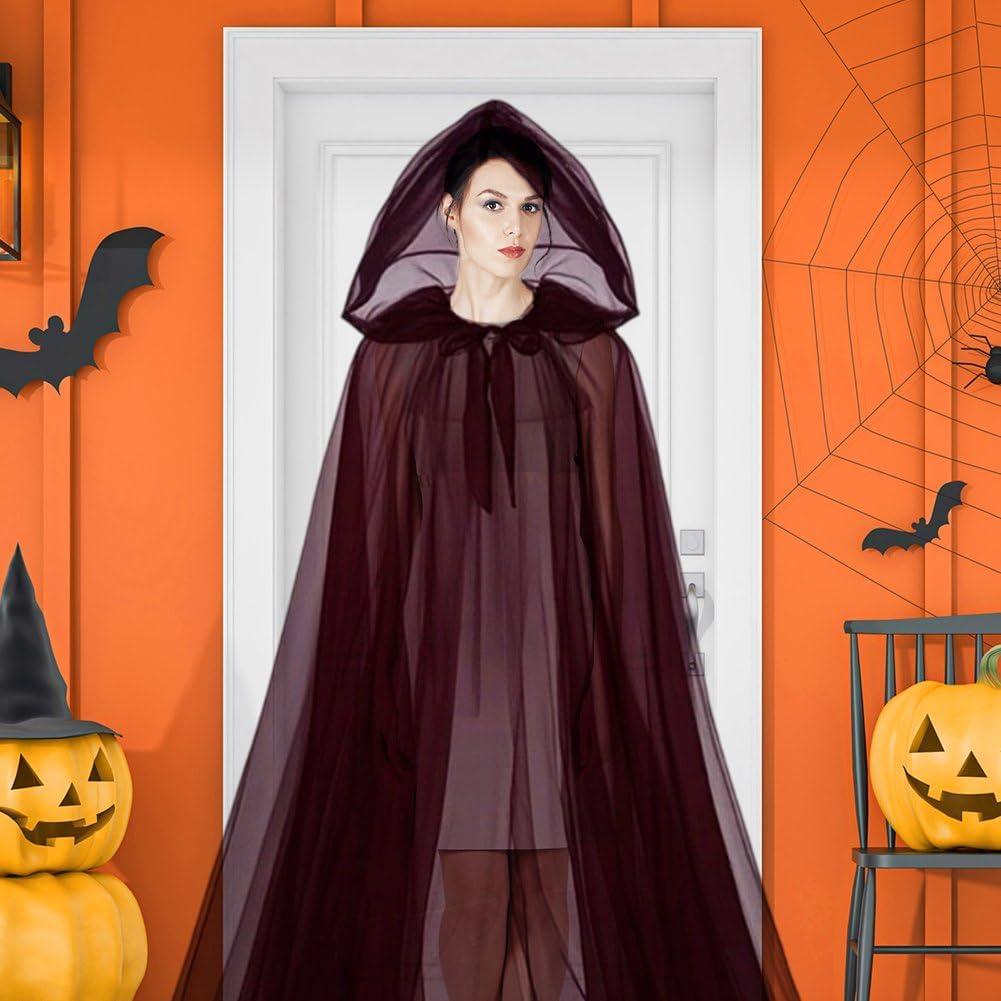 Questo mantello realizzato in tulle multistrato di alta qualità trasuda eleganza. Perfetto per Halloween, spettacoli, costumi e servizi fotografici: questo cappuccio a mantella aggiunge un tocco spettrale a qualsiasi costume. Design spettrale di Halloween: realizzato su misura per cosplay di streghe e fantasmi, questo mantello cattura l'atmosfera inquietante di Halloween - perfetto per completare i costumi di Halloween Cappuccio oversize per l'atmosfera: presenta un cappuccio oversize che aggiunge mistero e autenticità ai costumi da strega/fantasma, coprendo leggermente la testa per una silhouette spettrale, ma abbastanza comodo da indossare per ore. Trasformati con questo mantello di Halloween in una forma spaventosa. La mantellina taglia unica è pensata per adulti e ragazzi e può essere facilmente regolata alla lunghezza desiderata utilizzando le forbici. Uso versatile per cosplay e decorazioni: oltre Halloween, è adatto come supporto per cosplay fantasy. Scopri la strega o il fantasma dentro di te con questo accessorio di Halloween versatile ed elegante.