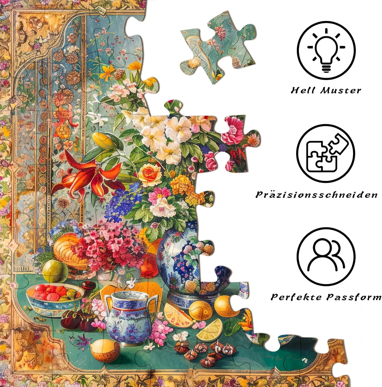 【PUZZLE ADULTI】 Nel vaso vintage fiorì con orgoglio un mazzo di fiori vintage. Non sono stravaganti come i fiori moderni, ma toccano l'anima dello spettatore con una bellezza sottile e profonda Ben fatto: materiale professionale per carte grigie di prima classe, migliore del biglietto blu. Inoltre ogni pezzo del puzzle è stato tagliato con precisione da 1024 pezzi per garantire una perfetta vestibilità Regalo ideale: se siete alla ricerca di qualcosa di speciale come regalo, non perdetevi questo bellissimo puzzle, che è un regalo eccellente per chiunque ami il puzzle. Regalo perfetto per compleanno, laurea, Natale, Ringraziamento, ecc Contenuto della scatola: puzzle HUADADA 1024 pezzi, in formato 50 cm x 50 cm, adatto a partire dai 14 anni 【1024 PUZZLE】Una volta finito, puoi incorniciarlo e decorare il tuo soggiorno o la camera da letto con esso, aggiungendo un tocco di bellezza artistica