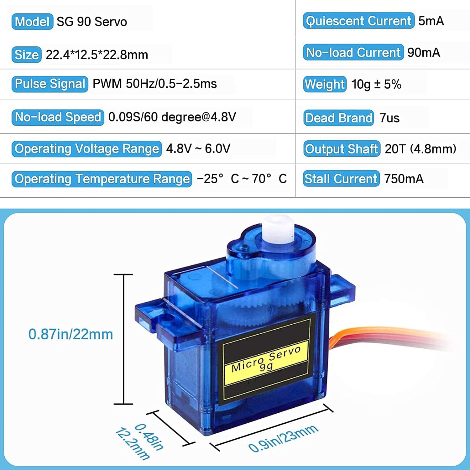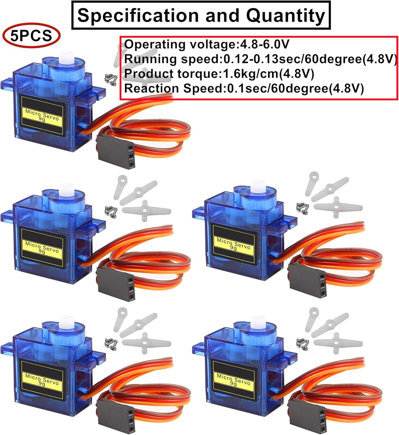 Facile da regolare: il micro servo facile da usare con tempo di risposta veloce, facile da regolare per prestazioni stabili e affidabili, alta affidabilità: il micro servo è progettato per la stabilità e funziona a temperature da 0 a 55 gradi. Applicazioni versatili:Servo motore appositamente progettato per piccoli aerei RC, elicottero rc, aereo rc, droni ed elicotteri; servo rc non raccomandato per grandi aerei ad ala fissa o elicotteri elettrici. Mini formato, facile da collegare. Meno rumore. Con un peso di soli 9 grammi, questo servo-RC è un motore compatto. Micro Airplane Servo elicottero, corpo traslucido. Più durevole dei normali servomotori, risolvendo il problema della sostituzione frequente. Velocità di funzionamento: 0,12 secondi/60 gradi (4,8 V senza carico), coppia di blocco (4,8 V): 17,5 oz/in (1 kg/cm), tensione di funzionamento: 3,0 V ~ 7,2 V, intervallo di temperatura: da -30 a +60, banda morta: 7 µs.