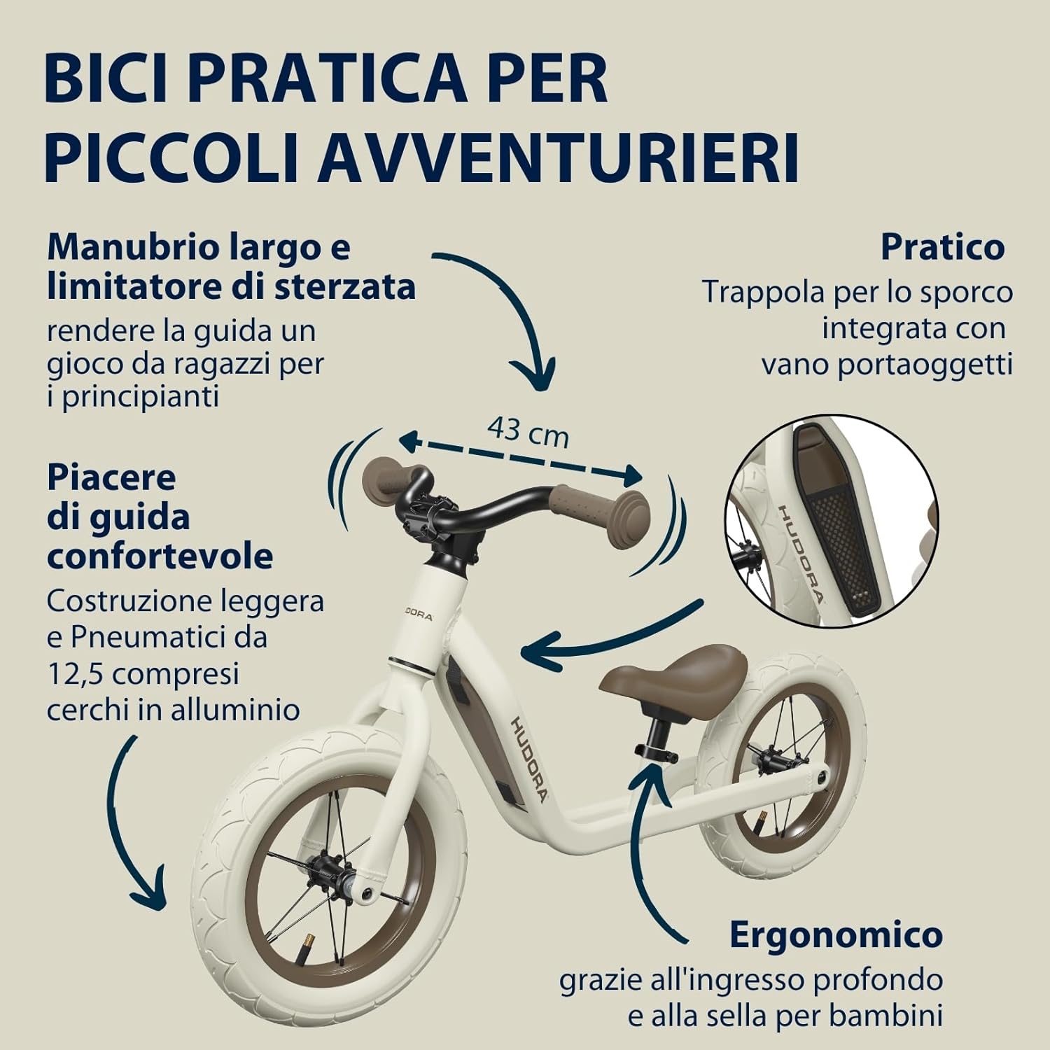 DIVERTIMENTO SICURO - Le ruote in schiuma da 10” garantiscono divertimento e comodità per non restare in panne, mentre il telaio in acciaio robusto verniciato a polvere garantisce massima sicurezza. COMODA E PRATICA - Grazie al peso leggero di 2,6 kg, la bicicletta si può girare e trasportare facilmente. Il sellino basso consente ai tuoi bambini di salire e scendere autonomamente. ADATTABILE - L’altezza del sellino è regolabile da 24 a 31,5 cm, così è sempre perfetta per il tuo bimbo. La nostra bici senza pedali è ideale per bambini tra 18 mesi e 4 anni alti da 78 a 100 cm. MODELLO PER INIZIARE - La geometria anti-shaking, la distanza extra lunga tra gli assi delle ruote, il manubrio ampio e la limitazione nello sterzo garantiscono grande stabilità per i primi tentativi di guida. HUDORA - L’azienda familiare alla 4a generazione che affascina i suoi clienti con esperienza, intuizione per le tendenze e la migliore qualità. Provare per credere!