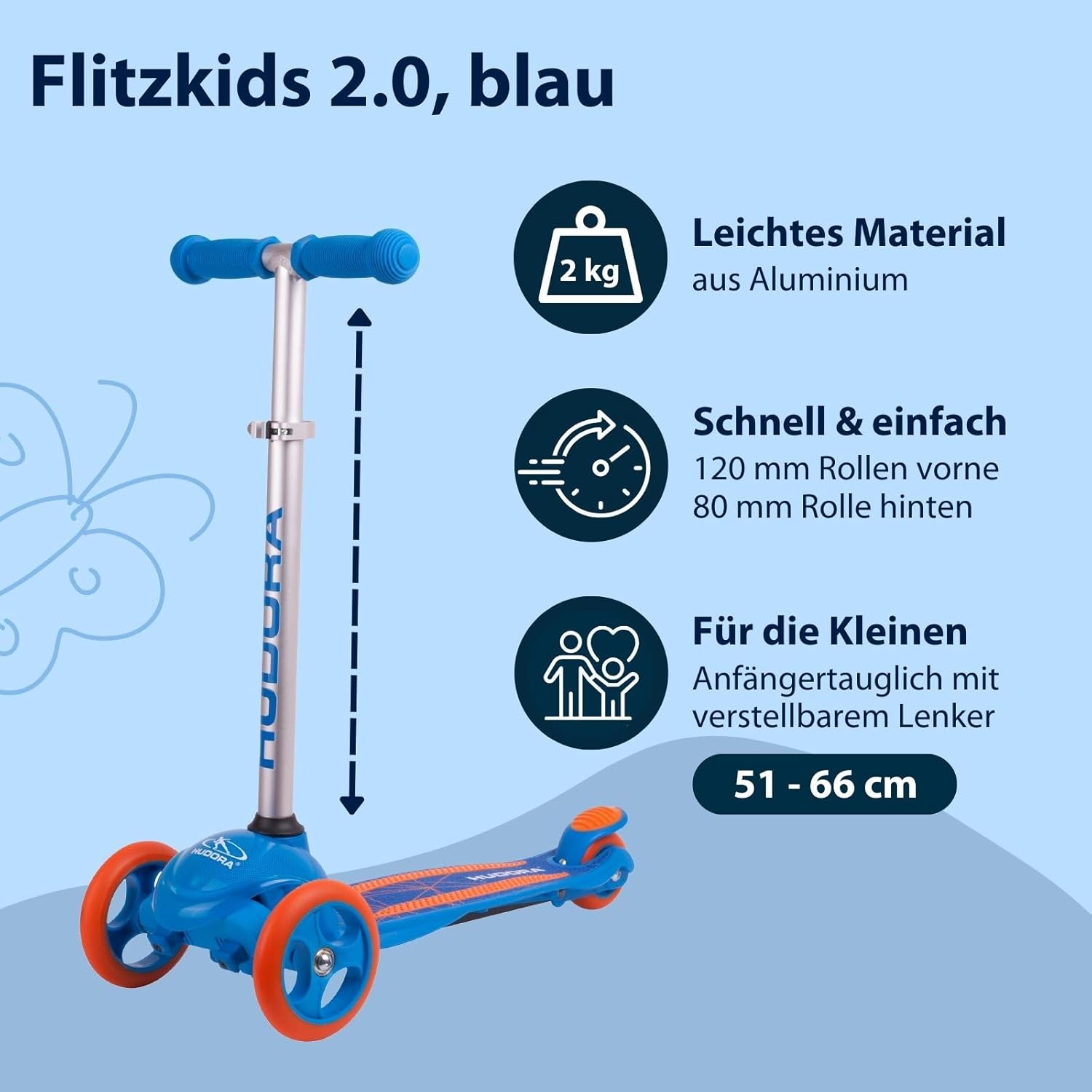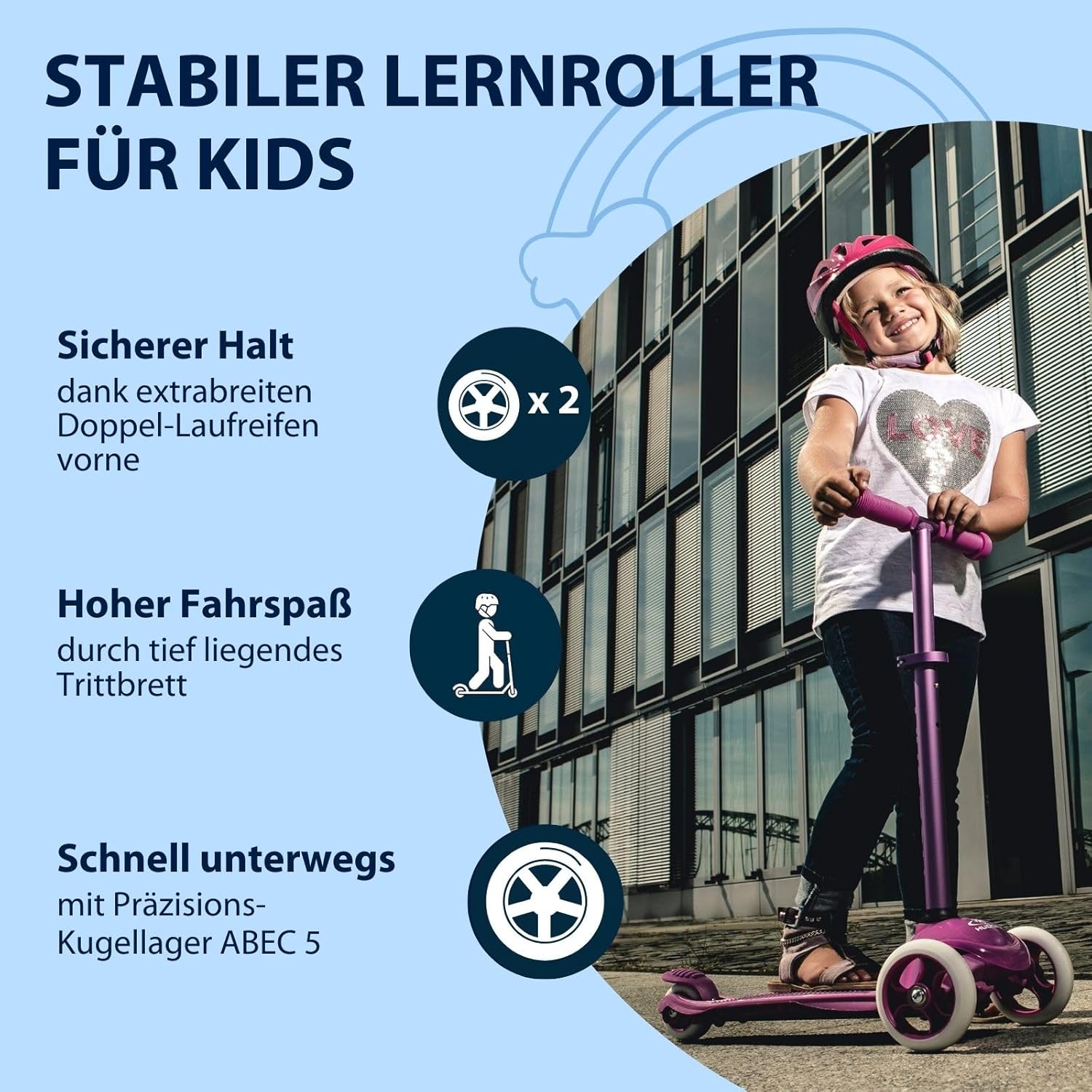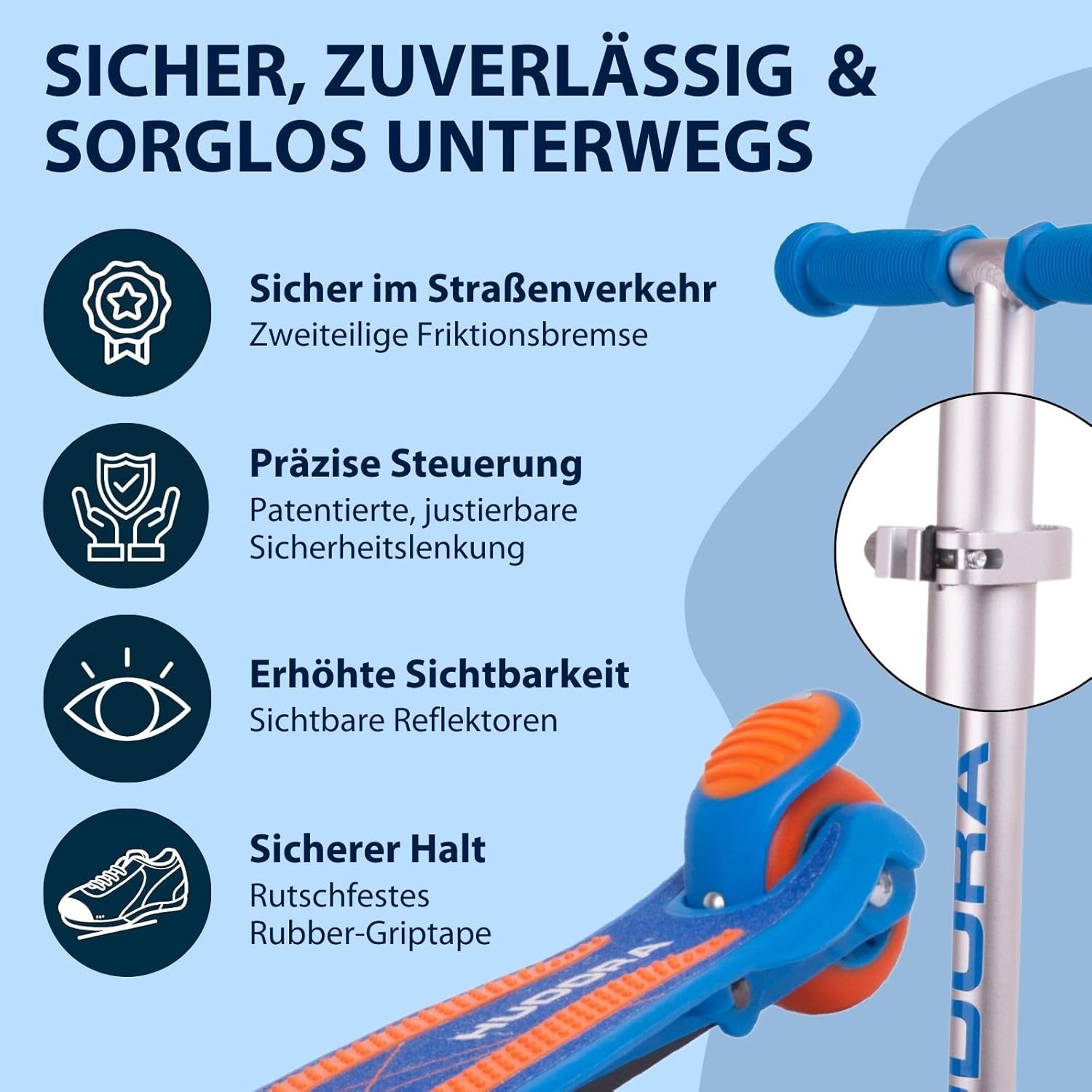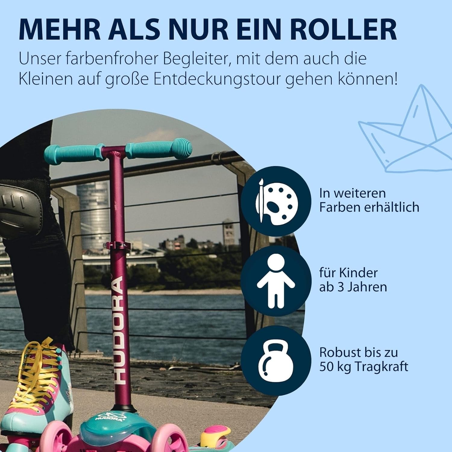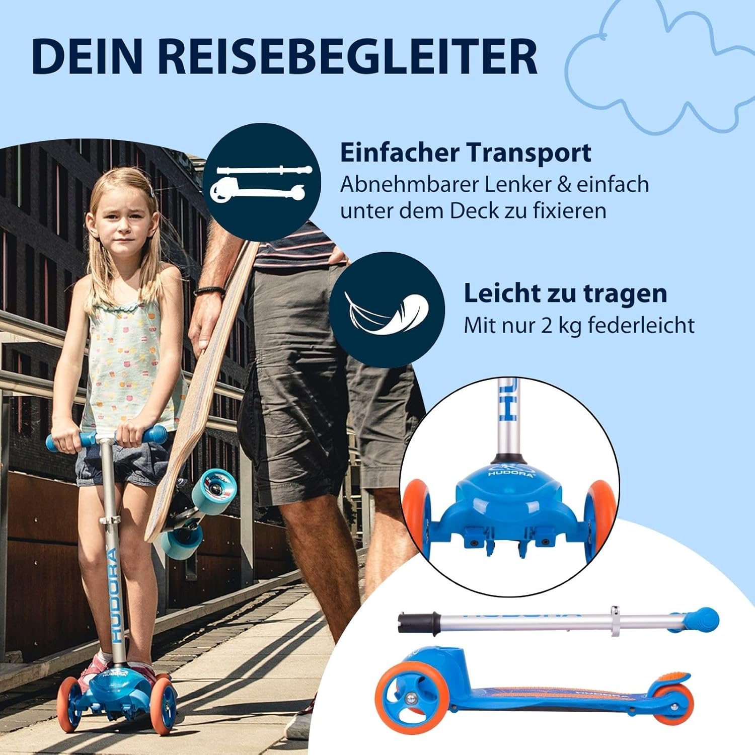 COLORATO - Per il massimo piacere di guida, lo scooter per bambini ha tre design che delizieranno i tuoi bambini: il modello entry-level perfetto per i piccoli conducenti di scooter! AFFIDABILE - Oltre al nastro adesivo, che garantisce stabilità, lo scooter colpisce per uno sterzo di sicurezza regolabile e brevettato e un freno a frizione in due parti che garantiscono una guida senza rischi. INDIVIDUALE - Lo scooter a 3 ruote è regolabile in altezza tra 51 e 66 cm e dispone di una robusta pedana bicomponente. Può sostenere anche fino a 50 kg, perfetto per i piccoli velocisti! FACILE - Il manubrio anodizzato può essere facilmente rimosso e riattaccato utilizzando una chiusura a scatto. Grazie all'alluminio di alta qualità, lo scooter pesa solo 2 kg e può essere facilmente trasportato. HUDORA - L'azienda familiare di quarta generazione è leader di mercato negli scooter e ispira i suoi clienti con esperienza, senso delle tendenze e massima qualità. Convinci te stesso!
