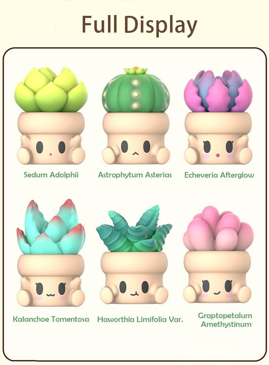 Nome del prodotto: i giocattoli Hugging Succulents 2 serie Blind Box sono oggetti da collezione che vengono forniti in una scatola sigillata, con il contenuto sconosciuto agli acquirenti fino a quando non li apre. Questa collezione di serie include 6 personaggi regolari e 1 edizione nascosta. Design casuale: ogni borsa è disposta in modo casuale. È possibile ottenere l'output nascosto in ogni singola scatola con una probabilità di 1/72 Quindi, se lo ottieni, congratulazioni, sei molto fortunato! Cute Size Toys: l'altezza di ogni personaggio è compresa tra 8 cm. Misuriamo manualmente la dimensione. Lievi variazioni sono considerate normali. Regalo perfetto: regalo a sorpresa per gli amici per compleanno, Natale, Halloween, San Valentino e molto altro ancora. Da mostrare in casa, per feste, accessori da scrivania o all'interno dell'auto. I personaggi sono carini e un regalo giocattolo da collezione. Un'opera d'arte che esprime sentimenti ed emozioni. Materiale: materiale PVC/ABS/carta non tossico, innocuo e inodore. I simpatici personaggi Lucky Box giocattoli colori dei personaggi sono vivaci e non facili da sbiadire. La superficie è liscia e di alta qualità.