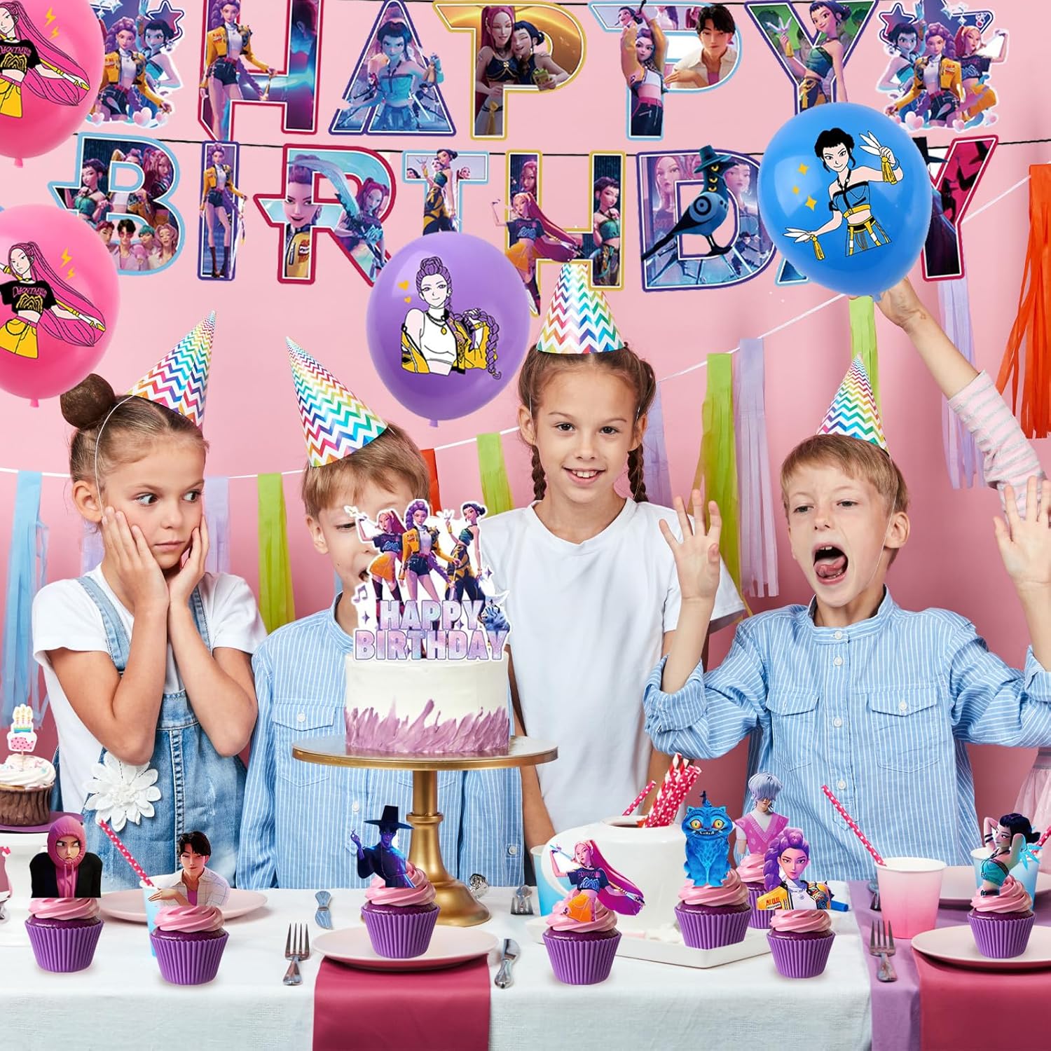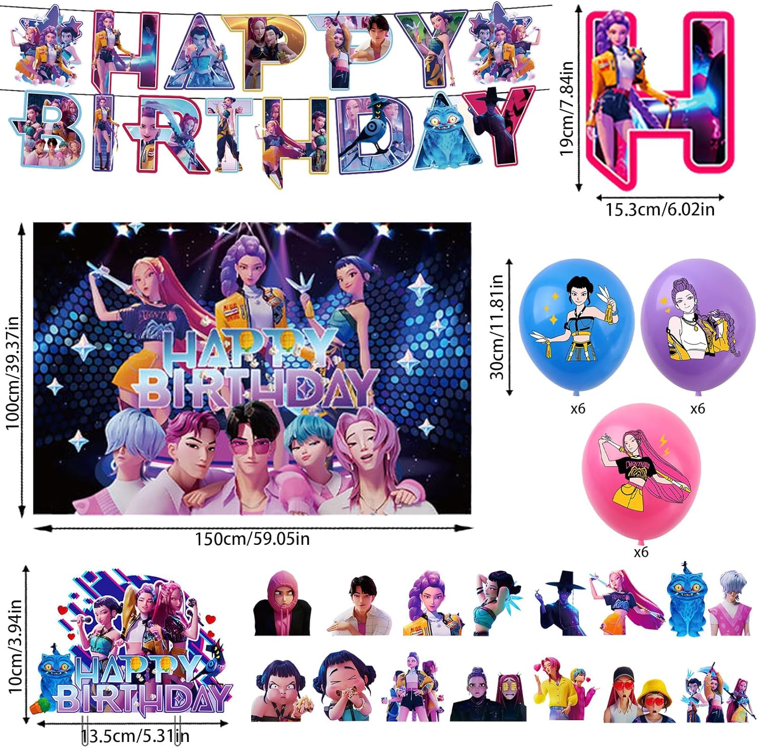 Confezione: 1 set di bandiere a tema + 1 grande topper per torta + 12 piccoli topper per cupcake + 16 palloncini colorati intensi. Un set completo da 31 pezzi, perfetto per la decorazione professionale di un compleanno a tema per bambini e soddisfa tutti i desideri di decorazione della tua festa in un colpo solo Materiale sicuro e sostenibile: i nostri striscioni di compleanno e topper per torte sono realizzati in cartone di alta qualità e resistente, i palloncini sono realizzati in lattice resistente e durevole. Tutti i materiali sono sicuri, ecologici e parzialmente riutilizzabili, il che è un'opzione sostenibile e affidabile per i genitori nella progettazione di una festa per bambini Facile ed efficiente da decorare: nessuna installazione complicata. Gli striscioni possono essere appesi direttamente, basta inserire i topper nei dessert, solo i palloncini richiedono un po' di lavoro di gonfiaggio. Grazie alle dimensioni compatte, sono possibili composizioni creative su tavoli da dessert, in salotto o come sfondo fotografico e donano immediatamente a qualsiasi stanza un'atmosfera unica e coinvolgente Scene applicabili e pubblico target: questo set di decorazioni non è adatto solo per feste di compleanno per bambini, ma anche per feste a tema, eventi di fan, feste di classe e molto altro ancora. È un punto culminante per i giovani fan sia per gli adulti che amano il mondo e vogliono creare un ambiente di festa autentico e coinvolgente Regalo per gli appassionati: il set non è solo una decorazione, ma un pezzo da collezione esclusivo per gli appassionati di KPOP. Confezionato in un design accattivante e dotato di elementi IP unici, è un regalo sorprendente per compleanni, feste o occasioni speciali, un vero e proprio highlight per chiunque apprezza il fascino di