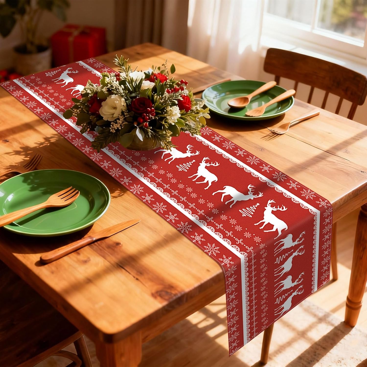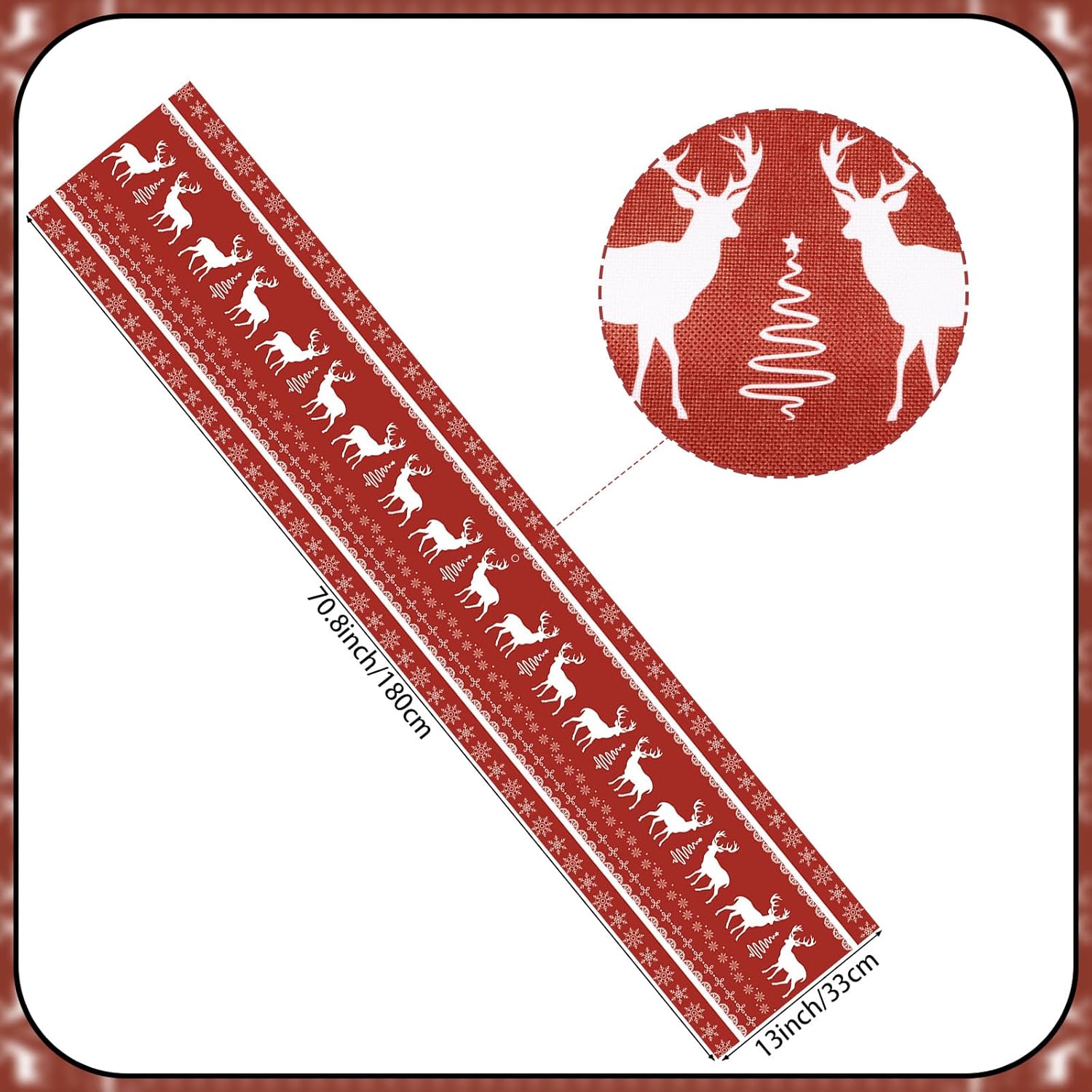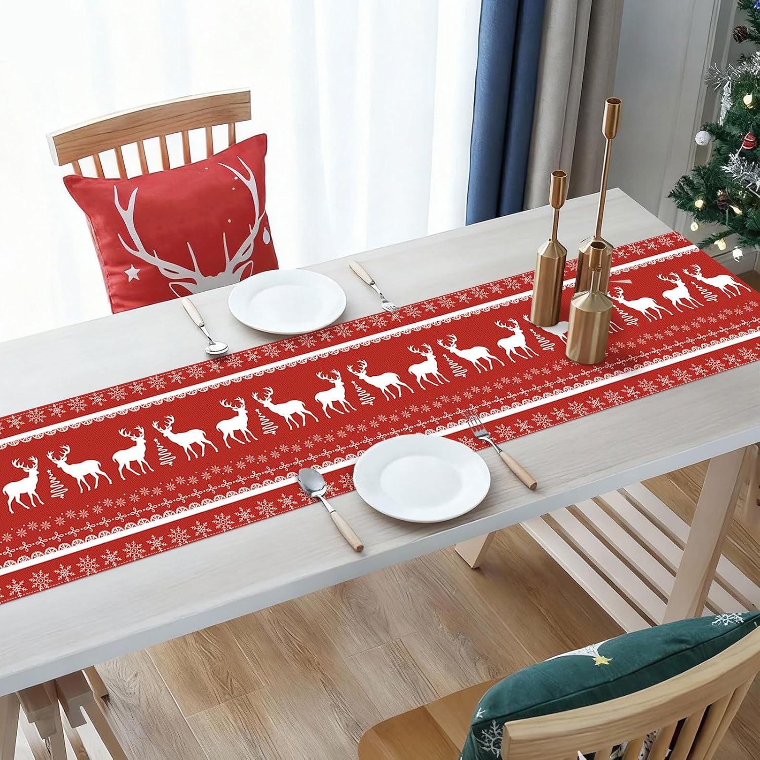 Dimensioni: il runner da tavola grigio misura 35 x 183 cm, è adatto per decorare un tavolo per 4-6 persone Materiale: il runner da tavola con fiocchi di neve è realizzato in 100% tela di poliestere filato, cuciture robuste e lavabile, protegge e decora il tuo tavolo Ampiamente usato: ideale per il tavolo delle feste di Natale, tavolo da cucina, camino, camino, comò, armadio TV, armadietto del vino, ecc. decorazione e perfetto anche per la cena quotidiana della famiglia Decorazione per feste di Natale: i motivi di fiocchi di neve e renne sono chiari e vivaci, dando un'atmosfera per feste invernali, sfondo rosso abbinato a renne bianche e fiocchi di neve renderanno le tue decorazioni natalizie più atmosferiche Lavabile in lavatrice: facile da stirare con vapore, non si restringe, non si stropiccia, non perde colore dopo il lavaggio