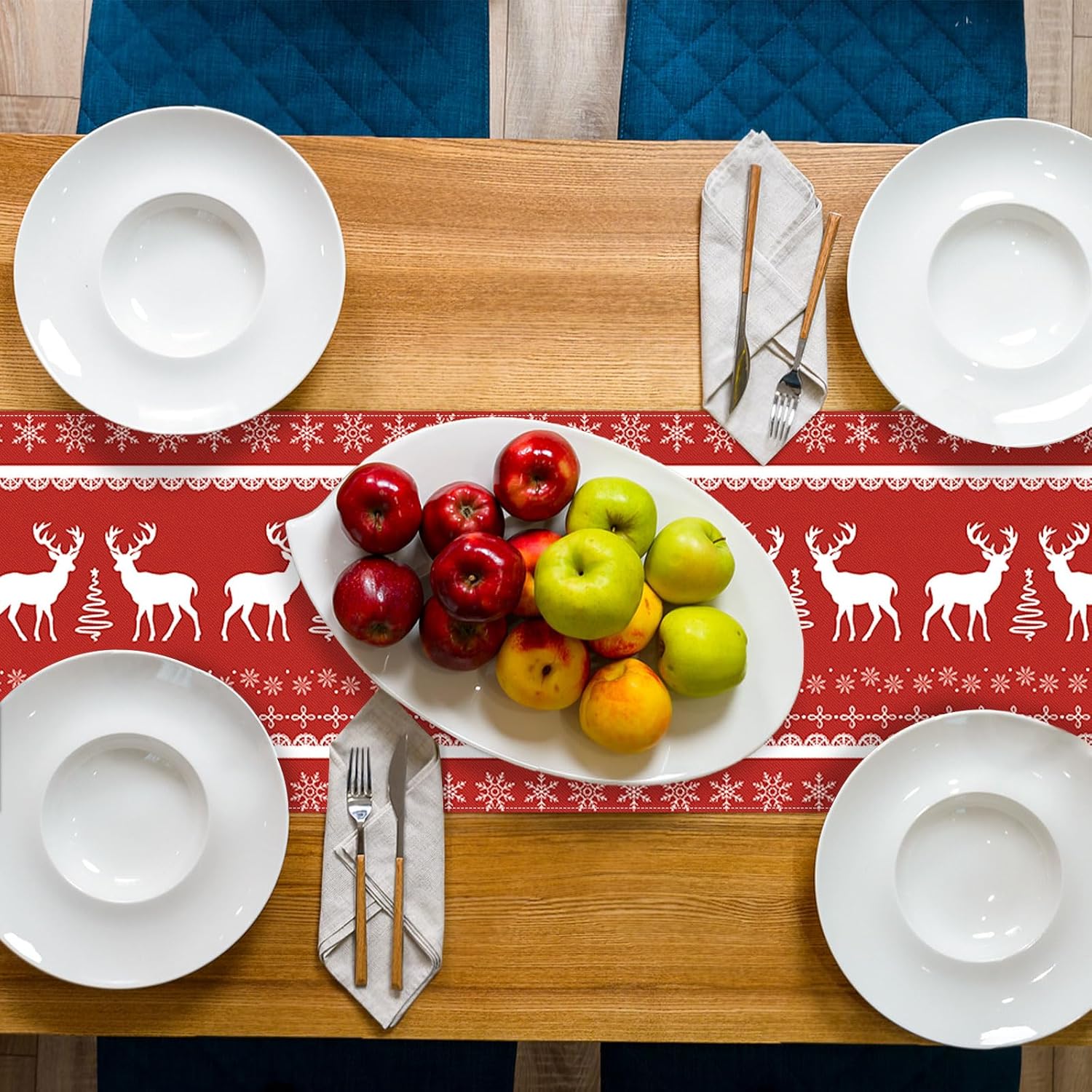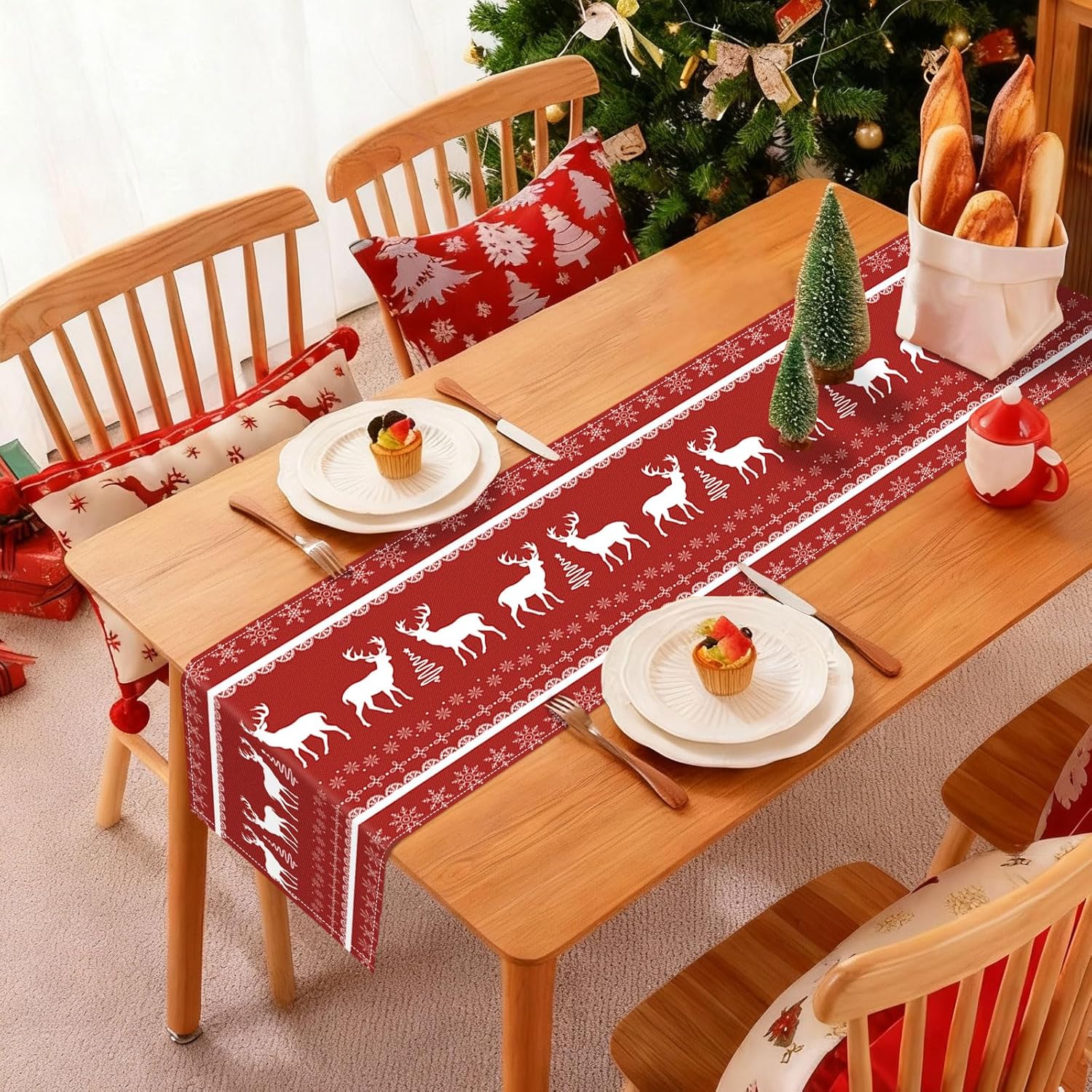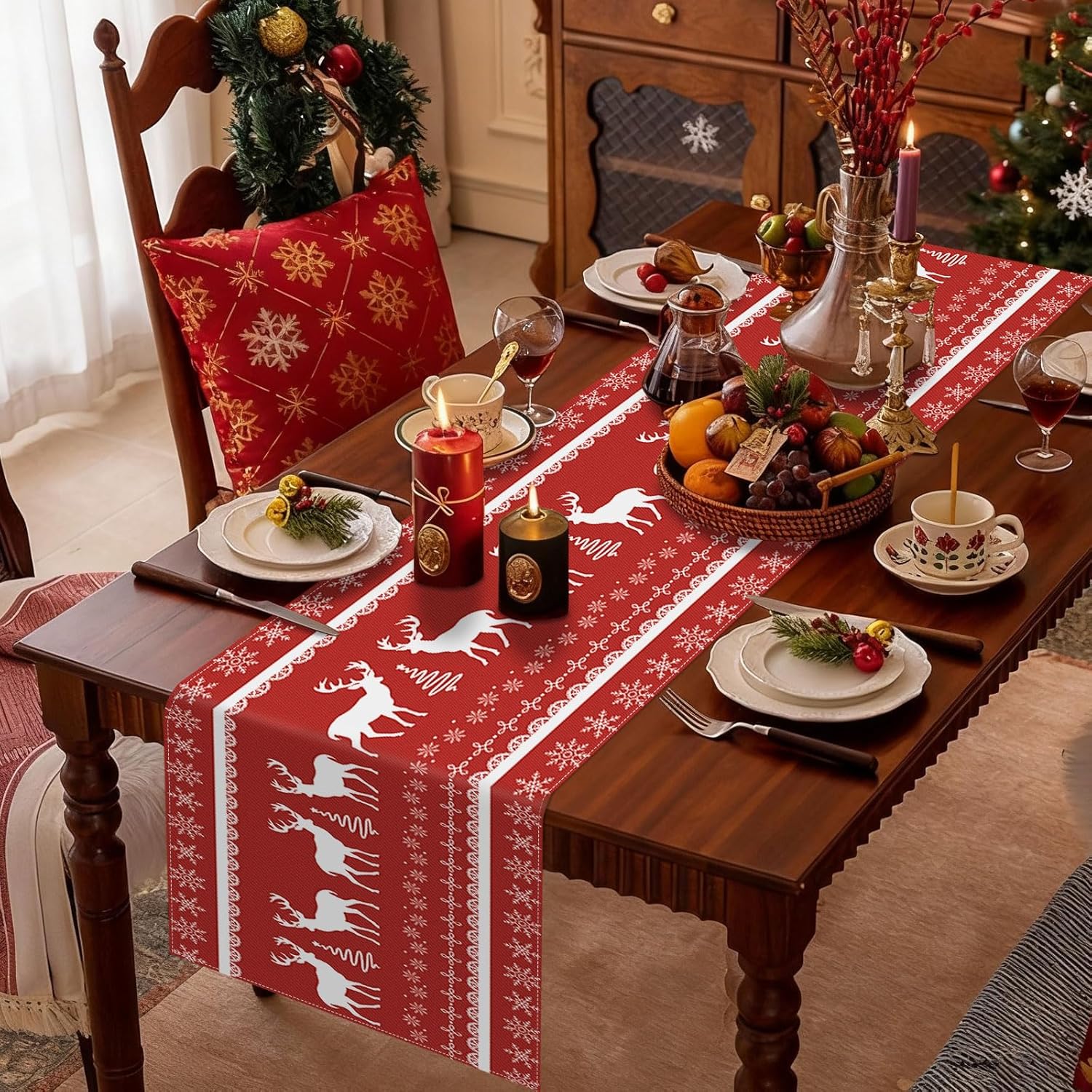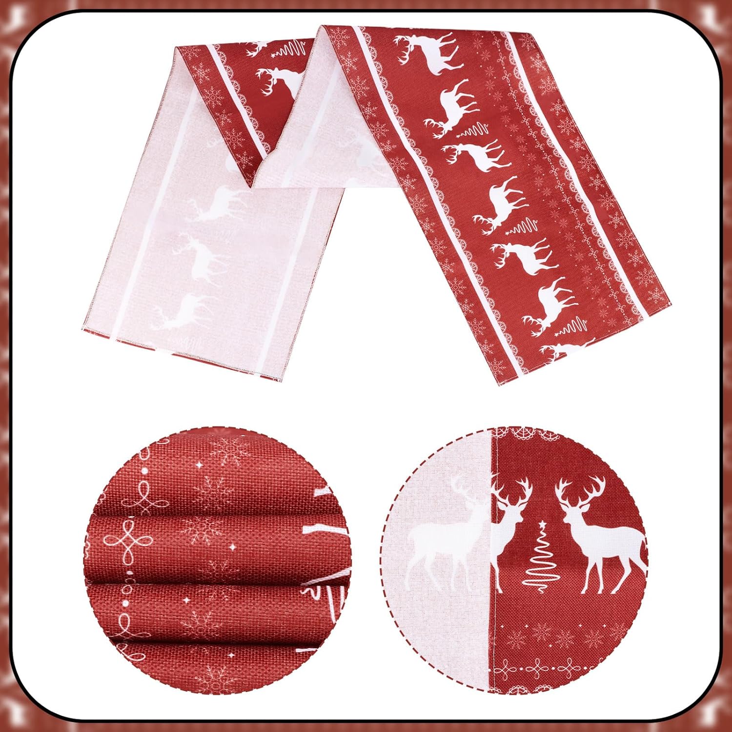 Dimensioni: il runner da tavola grigio misura 35 x 183 cm, è adatto per decorare un tavolo per 4-6 persone Materiale: il runner da tavola con fiocchi di neve è realizzato in 100% tela di poliestere filato, cuciture robuste e lavabile, protegge e decora il tuo tavolo Ampiamente usato: ideale per il tavolo delle feste di Natale, tavolo da cucina, camino, camino, comò, armadio TV, armadietto del vino, ecc. decorazione e perfetto anche per la cena quotidiana della famiglia Decorazione per feste di Natale: i motivi di fiocchi di neve e renne sono chiari e vivaci, dando un'atmosfera per feste invernali, sfondo rosso abbinato a renne bianche e fiocchi di neve renderanno le tue decorazioni natalizie più atmosferiche Lavabile in lavatrice: facile da stirare con vapore, non si restringe, non si stropiccia, non perde colore dopo il lavaggio