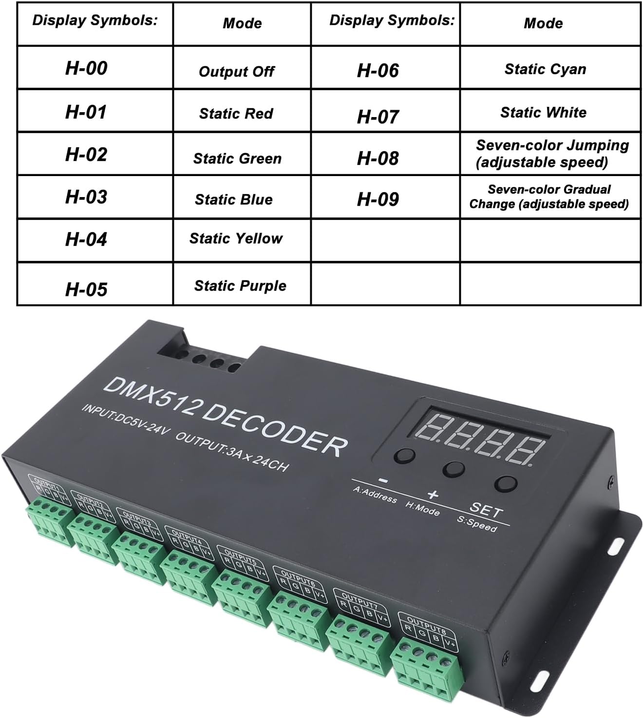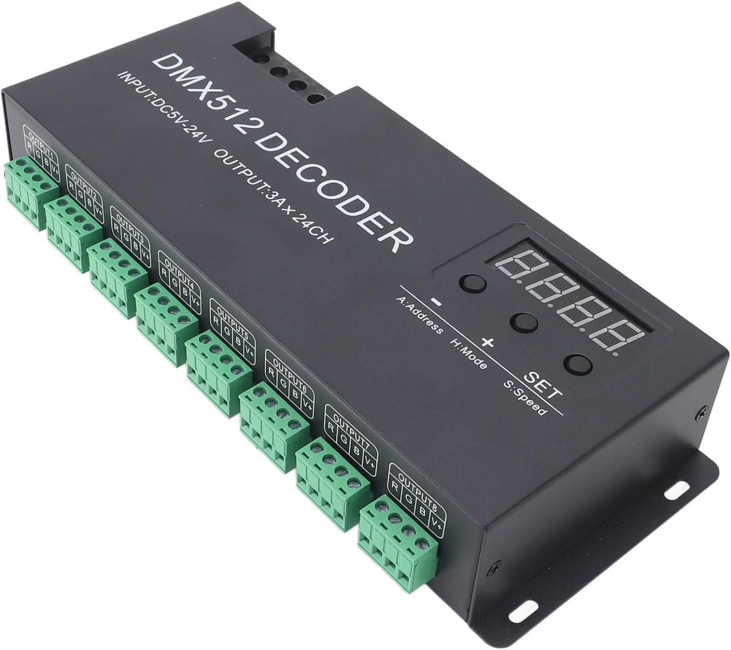 [Utilizzo versatile] Ampiamente utilizzato in grandi progetti LED per esterni per effetti di dissolvenza perfetti e colori LED più ricchi. [Indirizzamento facile] Dispone di tubo digitale a led per la visualizzazione dei codici di indirizzo e di semplice funzionamento dei tasti per l'impostazione flessibile 'indirizzo. [Chip di controllo avanzato] Il decoder utilizza chip di controllo avanzato del computer per convertire i segnali 512 in segnali del controller PWM per il funzionamento dei led. [Uscita espandibile] Questo decoder può essere collegato a una console digitale per espandere i di uscita per attenuare e programmare effetti migliorati. [Controller di sincronizzazione] Quando non è collegato a una console , funziona come controller di sincronizzazione per più decoder e luci a led.