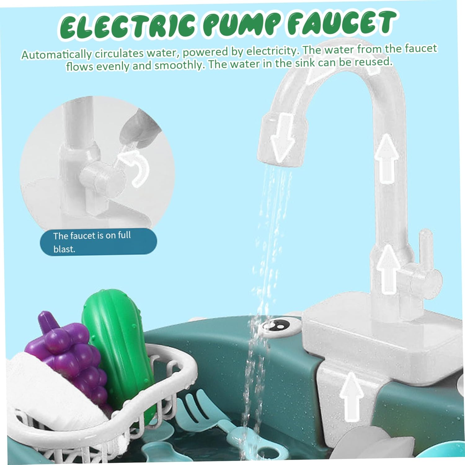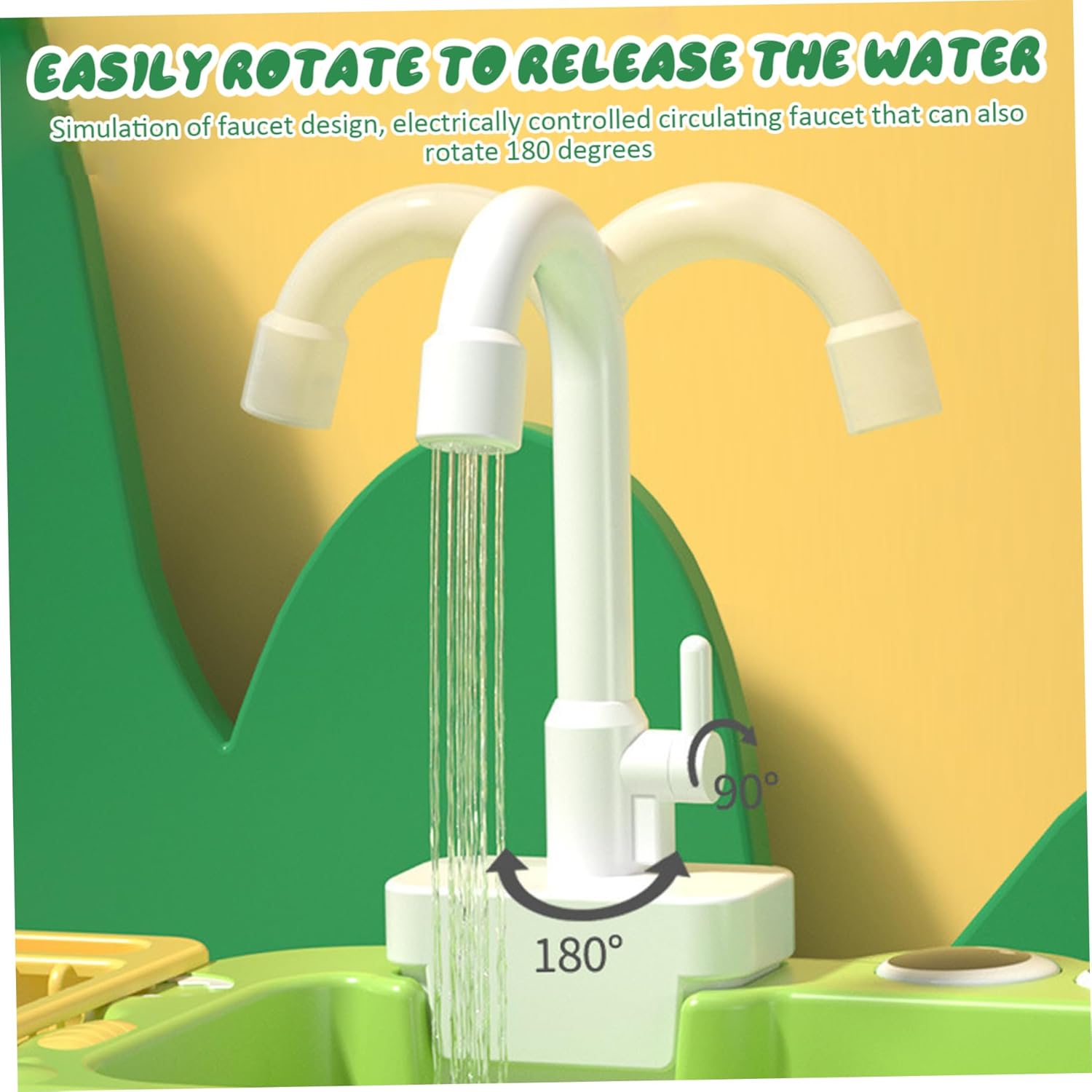 Flussi d'acqua realistici: presenta un rubinetto circolante che imita la vera acqua corrente, migliorando l'esperienza di gioco sensoriale e finta per i bambini. Funzionamento a batteria: richiede batterie (non incluse) per alimentare la circolazione elettrica dell'acqua, aggiungendo eccitazione interattiva al gioco della cucina per bambini. Materiale sicuro e stabile: realizzato in plastica di qualità e non tossica progettata per un uso sicuro e duraturo durante i tempi di gioco energetici. Drainer di piatti incluso: viene fornito con un comodo scarico di piatti per incoraggiare i bambini a lavare e asciugare verdure e piatti di gioco di ruolo, promuovendo buone abitudini. Dimensioni compatte e portatili: misurazione da 5,5x10.2x3 pollici, questo lavandino si adatta facilmente in qualsiasi area giochi, rendendolo ideale per il gioco interno o il divertimento in movimento.