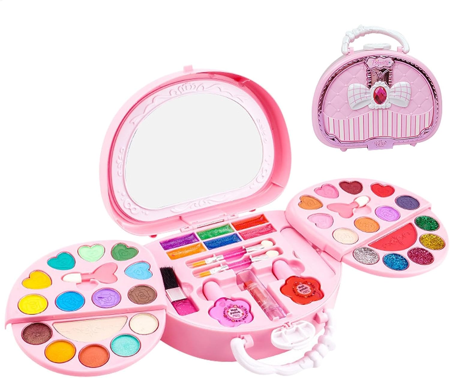 【Gioco fantasioso】: Immagina giocattoli di trucco per giochi di trucco, feste per bambini, attività con abiti da principessa e altre attività per bambini che incoraggiano la creatività e il gioco di ruolo del truccatore. 3 anni e oltre; Ideale per compleanni o occasioni speciali, questo set regalo ispira giochi fantasiosi e coltiva abitudini organizzative con la custodia inclusa 【Creazione】: questo set da gioco da tavolo con calderone in legno include 9 articoli per aiutare il tuo bambino a imitare la vita quotidiana della mamma, tra cui smalto per unghie, cipria, specchio, rossetto, pennello, tavolozza di ombretti, profumo, pettine e comoda custodia