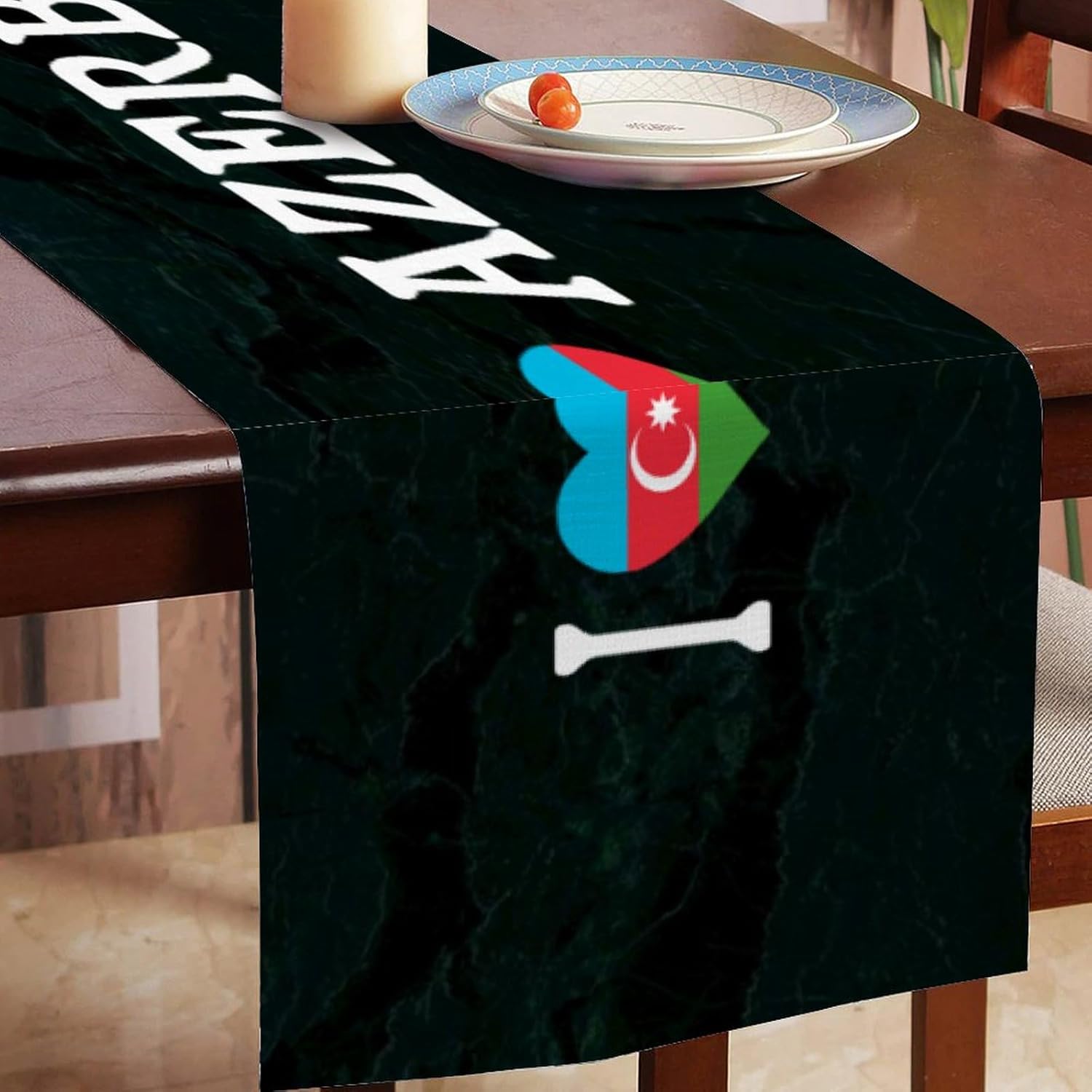 I Love Azerbaigian Runner da Tavolo Bandiera Nazionale dell'Azerbaigian Decorazione Stagionale per Cucina Tavolo da Pranzo Decorazione per Interni ed Esterni Sala da Pranzo per Feste 14x72 Pollici