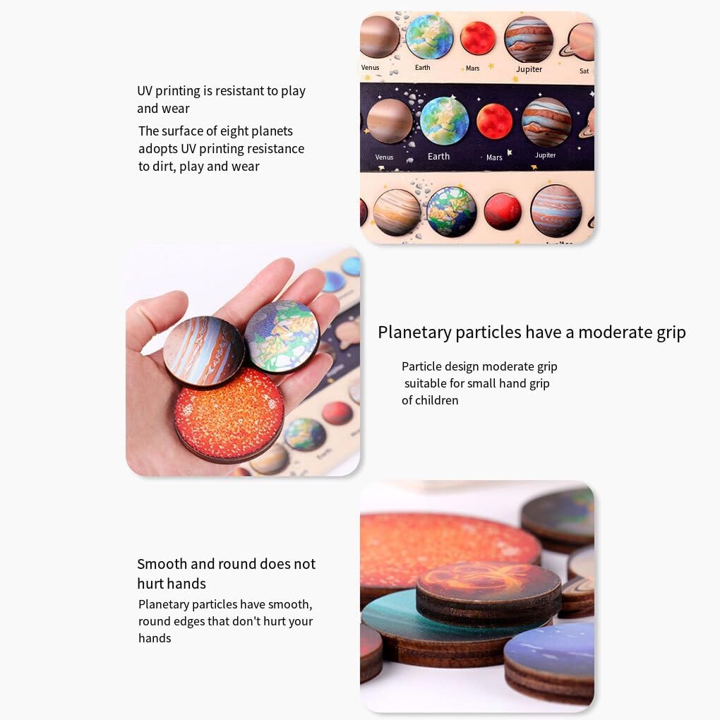 Durevoli e affidabili: realizzati in materiale di legno, questi puzzle del Per sistema solare sono costruiti per durare, garantendo divertimento e apprendimento duraturi per i tuoi piccoli Sviluppo e attività precoci: questi puzzle in legno servono a promuovere le capacità di sviluppo precoce, come la coordinazione -mano, la risoluzione dei problemi e le capacità motorie. Lascia che i tuoi bambini esplorino le meraviglie del Per sistema solare con questi puzzle interattivi Calorosa interazione genitore-figlio: goditi il tempo con i tuoi bambini mentre assembli insieme questi puzzle di pianeti in legno. Promuovi un legame forte e ricordi preziosi mentre insegni loro il Per sistema solare I migliori regali per ragazzi e ragazze di 3-6 : sorprendi i tuoi piccoli con questi puzzle educativi che combinano apprendimento e divertimento. Saranno entusiasti di scoprire i diversi pianeti e di ampliare le loro conoscenze sullo spazio Ampia gamma di usi: non un puzzle, questi giocattoli in legno del Per sistema solare possono essere utilizzati anche come pezzi decorativi o strumenti educativi nelle aule. Migliora l'immaginazione e la curiosità di tuo figlio con questi puzzle universali