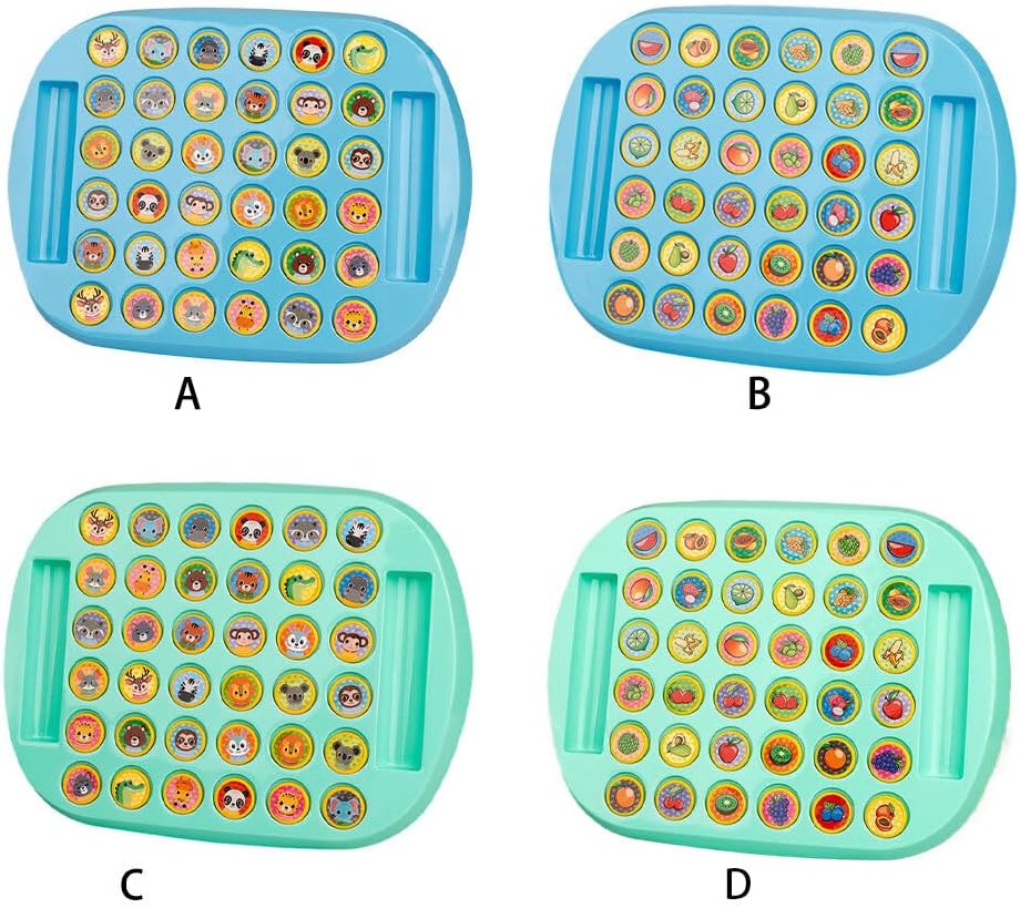 Gioco di memoria interattivo: metti alla prova le capacità di memoria di tutti lanciando modelli di animali e frutta sulla scacchiera, promuovendo la comunicazione e la cooperazione tra genitori e figli o amici Colorato: i motivi di animali e frutti dai colori vivaci e carini attirano l'attenzione dei bambini, aumentano il loro interesse e stimolano la loro immaginazione, migliorando le capacità cognitive Facile da giocare: regole semplici e di facile comprensione rendono questo gioco di scacchi ribaltabile con memoria per due giocatori adatto a giocatori di tutte le età Divertimento in famiglia: migliora l'interazione con questo gioco competitivo multiplayer, per serate di gioco in famiglia o incontri con gli amici Miglioramento della memoria: esercita la memoria e le capacità di attenzione trovando stili corrispondenti sul tabellone di gioco a fogli mobili, un'esperienza di gioco da tavolo divertente ed educativa