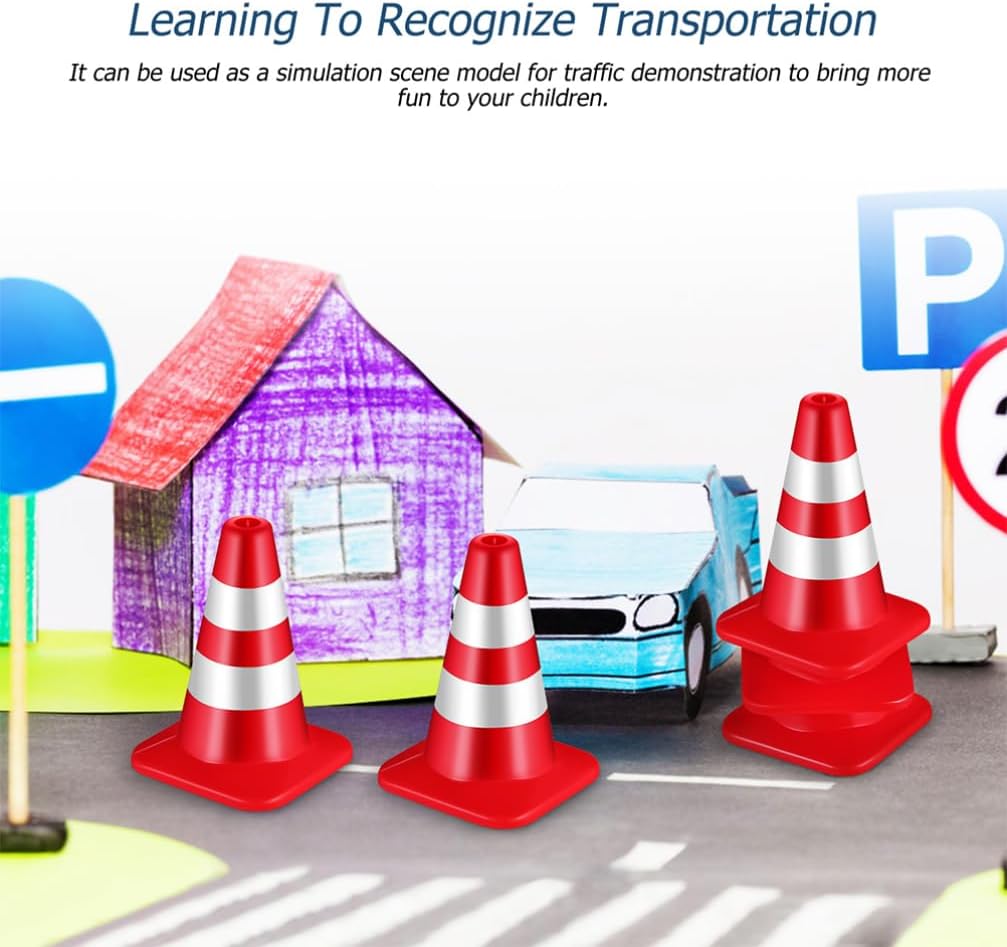 MINI CONI STRADALI: sono realizzati in materiale ABS per una maggiore durata. i colori vivaci e gli accessori realistici per il recinto stradale lo rendono facile da ricordare per i bambini. CONI STRADALI IN MINIATURA: giocattolo di conoscenza artistica per bambini piccoli, un educativo e di sviluppo intellettuale. SEGNALI STRADALI: i colori vivaci e gli oggetti di scena realistici delle barricate stradali facilitano la memorizzazione dei bambini. PICCOLI CONI ROSSI: design leggero e compatto, facile da prendere e trasportare. GIOCATTOLO DEI BLOCCHI STRADALI: può anche essere utilizzato come modello di scena di simulazione per la dimostrazione del traffico, portando più divertimento ai bambini.