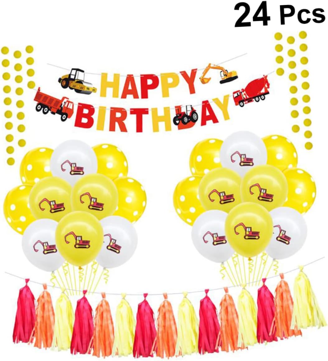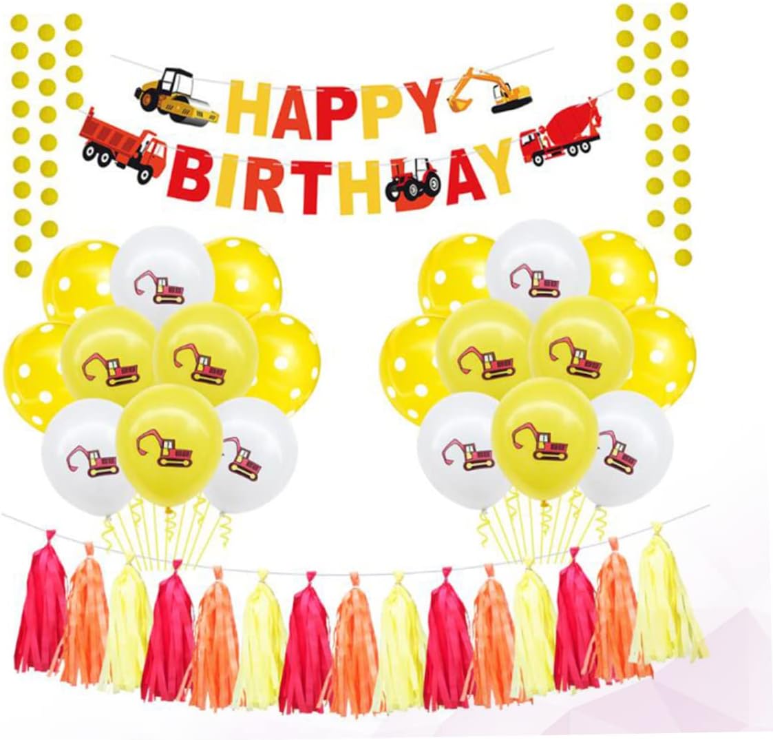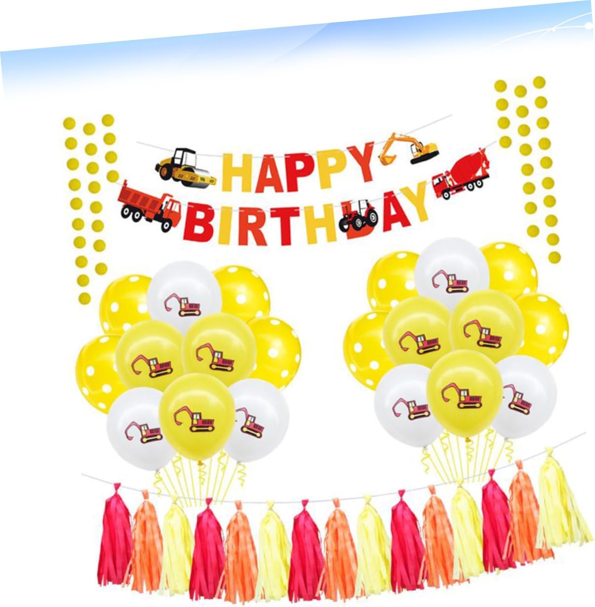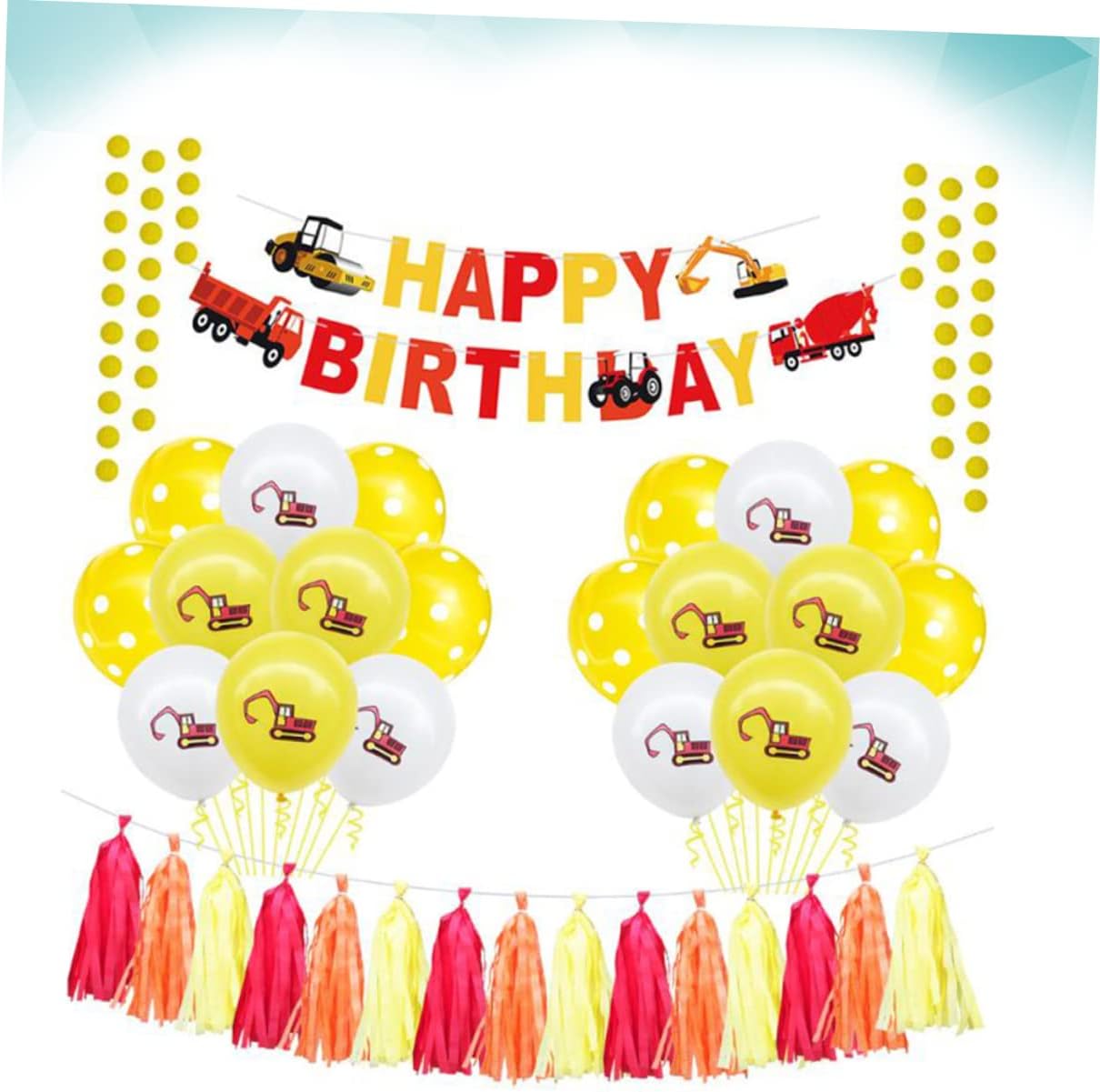 Forniture per feste: con un design dalla forma semplice, è ottimo per la decorazione della festa e aiuta a creare ricordi indimenticabili per te, palloncino decorativo Decorazione di compleanno: inizia la tua festa con un set di decorazioni che creerà l'atmosfera della festa, un palloncino decorativo Palloncino decorativo: articoli per feste e decorazioni per aggiungere un'atmosfera e festosa alla festa di compleanno, bandiera di compleanno Bandiera di compleanno: la confezione include 1 nappa, 1 bandiera da tirare per l'escavatore, 2 bandiere da tirare a fetta rotonda, 20 palloncini, palloncino decorativo Questo set di decorazioni ti aiuterà a completare la decorazione della festa di compleanno