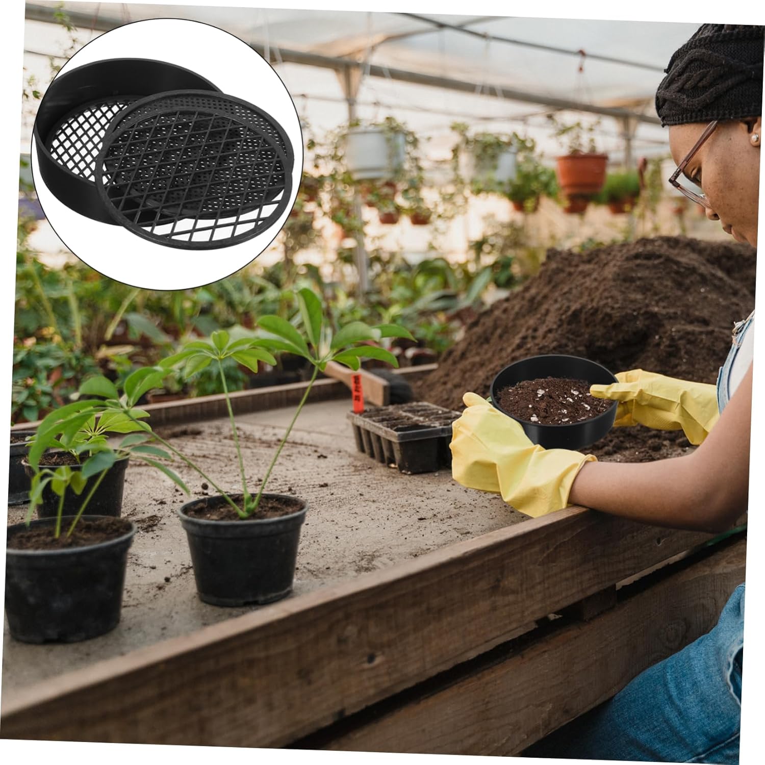 Setaccio per terreno da giardino: plastica ben selezionata, ricca di materiali, resistente e durevole, classico, fresco ed elegante, setaccio da giardinaggio Setaccio per terreno da giardinaggio: sono ottimi strumenti per far passare ghiaia, sabbia e piccoli pezzi d'oro, setaccio per terreno da giardino Filtri antisporco per piante in vaso: hanno un design semplice, ma sono molto pratici da usare, ti offrono molta praticità, setaccio da giardino Setaccio per terreno da giardino: il design portatile impedisce la caduta ed è più sicuro da usare, setaccio per terreno Colino per il terreno: può essere utilizzato come strumento da spiaggia per far divertire i più piccoli mentre giocano con la sabbia, setaccio per il giardinaggio
