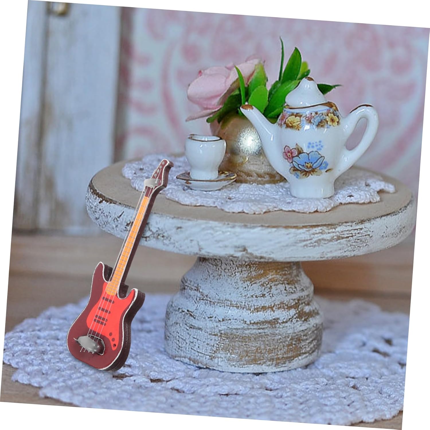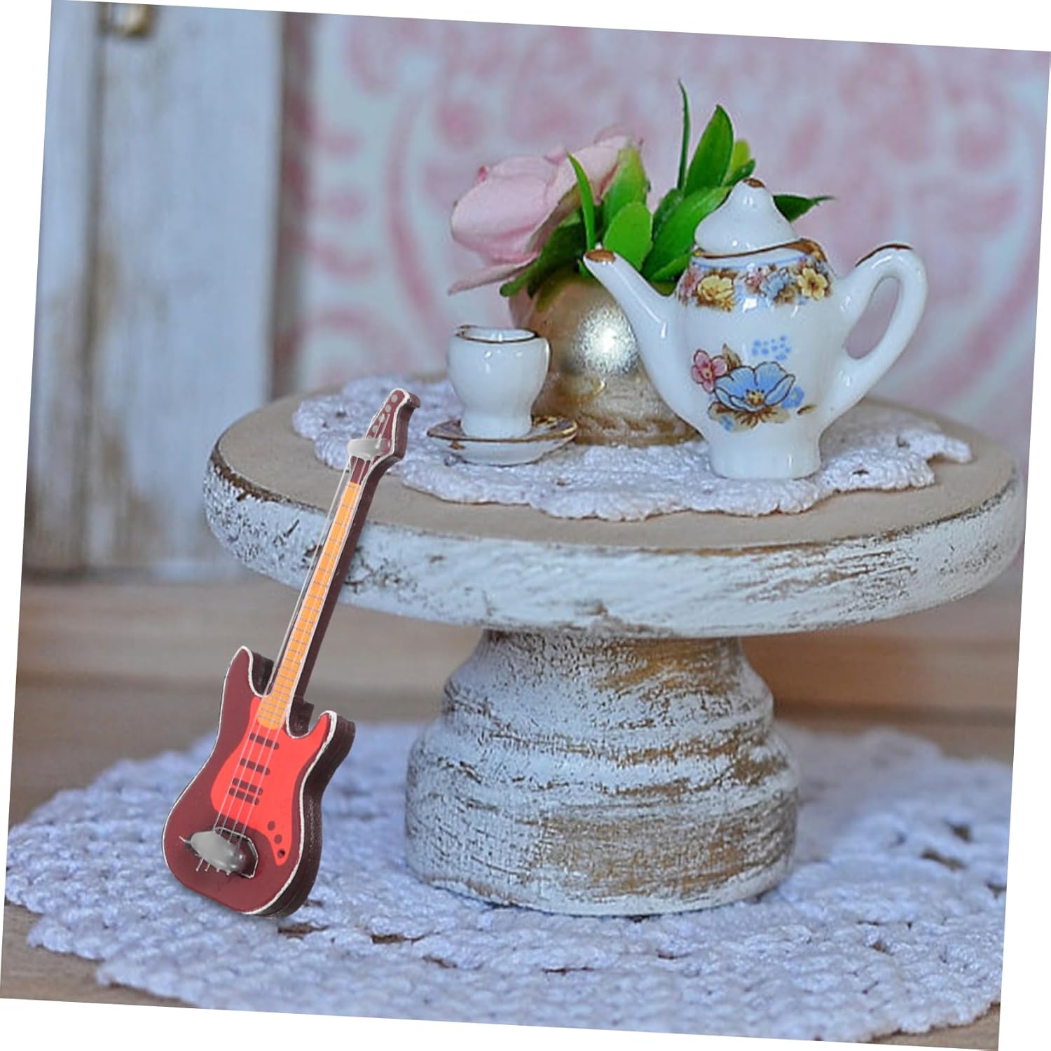 Mini giocattolo per la casa: per una o più persone per giochi di ruolo, riconoscimento dello strumento, giocattolo educativo Fai finta di suonare la chitarra: funziona come un'ottima decorazione per il tavolo di casa o dell'ufficio., ornamento artistico Piccoli mobili: materiale, ragionevole e prestazionale, giocattolo per chitarra Chitarra in miniatura: è ben lucidata, molto liscia, non ti farà male alla mano, mini chitarra Suonare la chitarra in casa: pregevole fattura e garantirne la popolarità, ornamento per la casa
