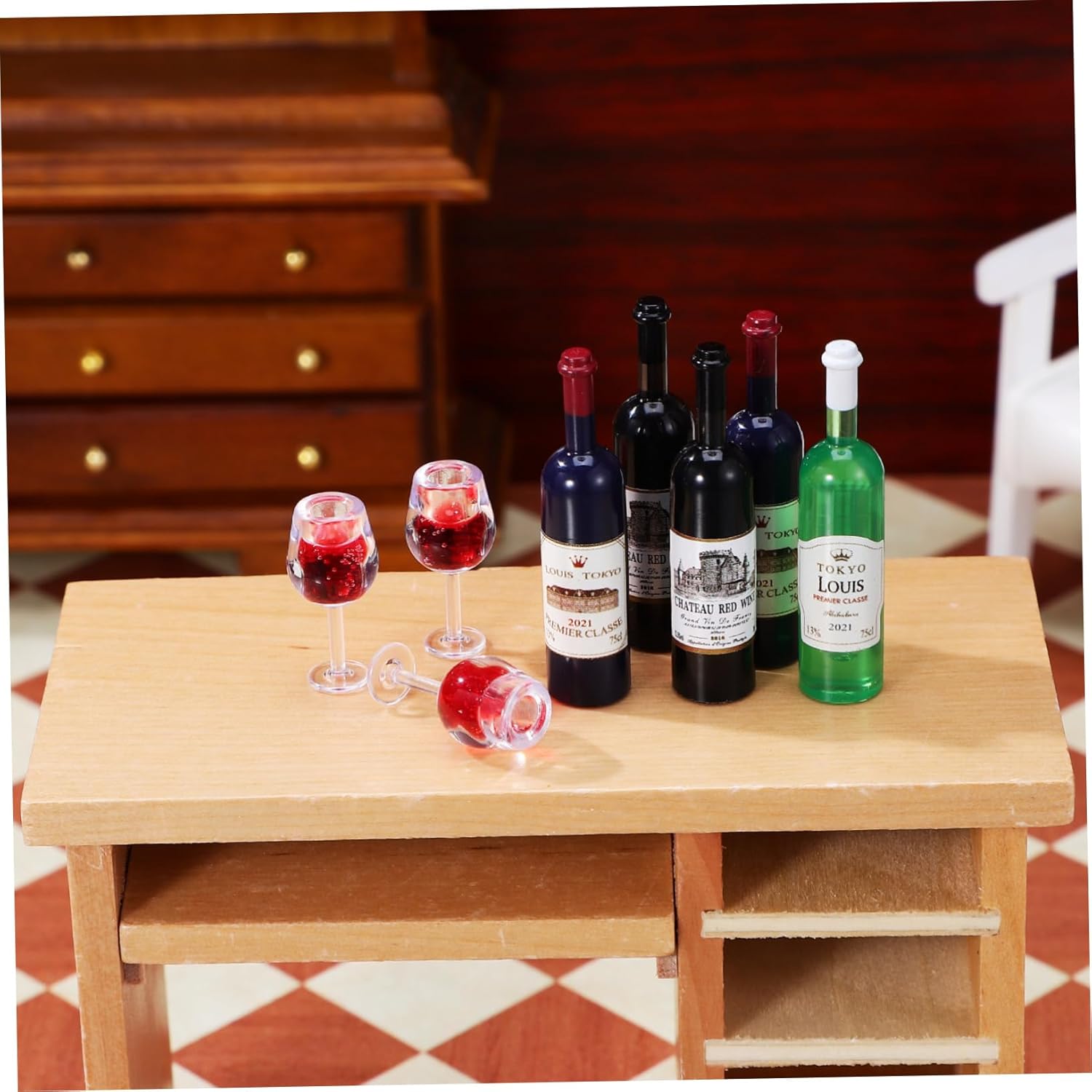 Bottiglia di vino della casa delle bambole: dettaglio realistico: una replica meticolosa assicura che queste mini bottiglie di vino e bicchieri sembrino una versione in miniatura della cosa reale, migliorando l'autenticità delle scene della tua casa delle bambole, bottiglie in miniatura della casa delle bambole. Mini bottiglie di vino: bassa manutenzione: la composizione plastica di queste miniature di case delle bambole consente una pulizia rapida, mantenendo un aspetto incontaminato con il minimo sforzo, bicchieri da vino delle case delle bambole. Tazze per calici da vino 1:12: pezzi decorativi: ideali per sale da pranzo, bar, feste di case delle bambole o come di una collezione, queste miniature aggiungono un tocco di festività e a qualsiasi , modello mini bottiglie per bevande. Tazze per bevande delle case delle bambole: ridotta: adattano armoniosamente ai diversi paesaggi delle case delle bambole, queste bottiglie di vino in miniatura e miniature di migliorano i decori attuali, bottiglie per bevande in miniatura. Mini bicchieri da vino: facile da mantenere: la struttura in plastica delle miniature della casa delle bambole consente una pulizia semplice con un panno umido, garantendo che la tua casa delle bambole abbia un aspetto migliore con una manutenzione minima e dispositivi di raffreddamento.