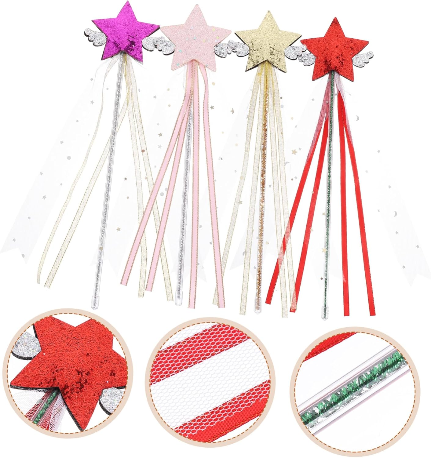 Bacchette fatate con design a nastro: il bastoncino fatato creativo può abbinarsi bene ai vestiti del tuo e renderlo più bello, bacchette fatate portatili Giocattolo per esibizioni sul palco: regala questa ai tuoi come di compleanno, come bomboniera, come premio in classe, come giocattolo da gioco e altro ancora, come accessorio per esibizioni sul palco Bastoncini da fata per ragazze: belli e pratici, leggeri e, questa da fata è facile da impugnare, lascia che i tuoi divertano, giocattoli per Decorativa: a forma di stella, rendi la tua bambina più adorabile e accattivante, Bacchette magiche: questa è molto adatta ai per giocare a fare le fate, le fate, gli elfi alle feste di halloween o altri festival, bacchette magiche portatili