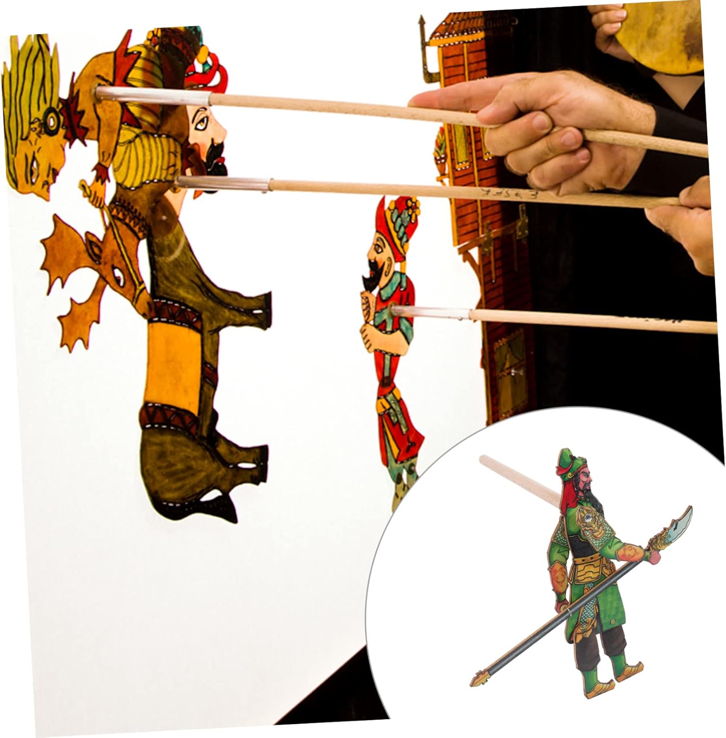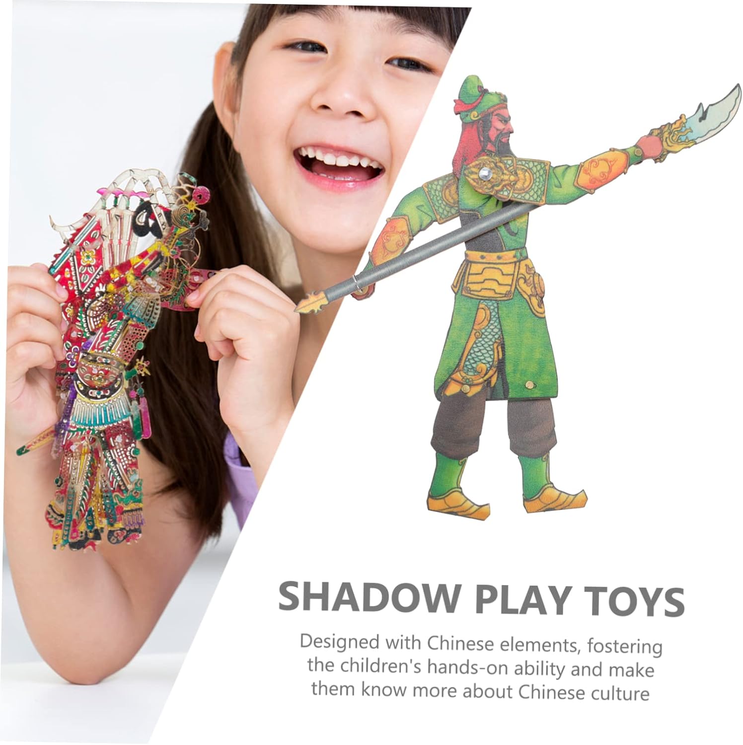 Tradizionale teatro delle ombre: questo burattino è realizzato meticolosamente e il colore non sbiadisce facilmente dopo un uso prolungato. Marionette ombra: questo giocattolo di marionette ombra può essere utilizzato come supporto per spettacoli teatrali. Teatro delle marionette per bambini-- adatto a centri di educazione, scuole materne e scuole primarie per svolgere corsi di artigianato, corsi di bellezza e di lavoro, attività genitori-figli, ecc. Materiali per marionette d'ombra: la pregevole fattura e il bell'aspetto ne garantiscono popolarità e praticità. Burattino cinese: progettato con elementi cinesi, promuove l'abilità pratica bambini e li fa conoscere meglio la cultura cinese.