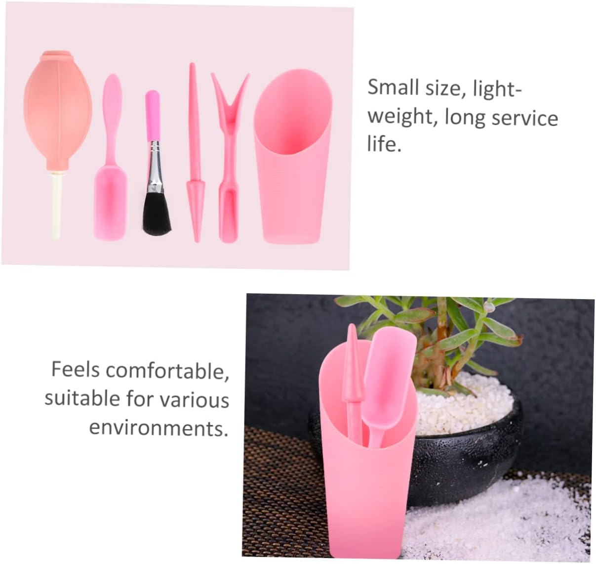 Kit di strumenti per la piantagione di piante succulente: perfetto per attività di giardinaggio come la coltivazione di piantine, la perforazione di buchi, la piantagione di piante carnose, lo scavo di piantine, il trapianto, la pulizia della polvere del terreno con la pala, il kit per la piantagione di piante succulente Forniture per la piantagione di piante succulente: il design compatto lo rende più comodo da riporre e trasportare, mini attrezzi da giardino per piante succulente Kit di strumenti per piante grasse: gli strumenti sono realizzati in materiale robusto per un uso durevole e pratico, kit per la coltivazione di piante grasse Kit per la cura delle piante: questo design ergonomico ti aiuta a utilizzare gli strumenti con facilità, informazioni sulla piantagione di piante grasse Piccoli attrezzi per la piantagione di piante grasse: un set di attrezzi da giardinaggio in miniatura perfetto e completo per gli amanti della piantagione, attrezzi per la piantagione di piante grasse
