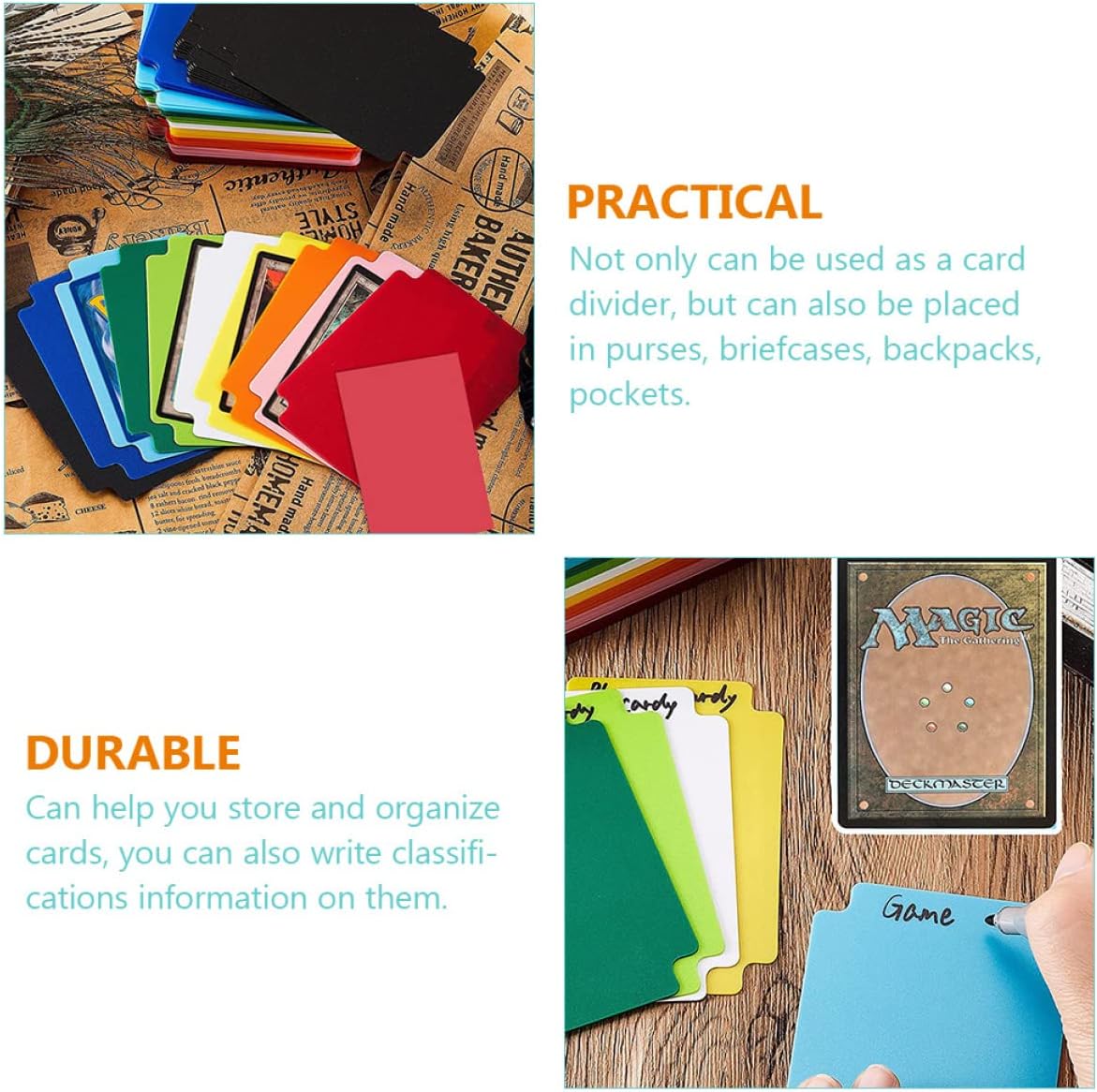 Deposito per baseball: realizzato in materiale plastico affidabile, non facile da sbiadire o deformare, impermeabile e facile da pulire. Separatore di carte collezionabili: non solo può essere utilizzato come divisore di carte, ma può anche essere inserito in borsette, valigette, zaini, tasche. Forniture per carte da gioco: possono aiutarti a memorizzare e organizzare le carte, puoi anche scrivere informazioni sulla classificazione su di esse. Carte divisorie: il divisore di cenere è realizzato con , durevoli e abbastanza pratici da usare. Divisore sportivo: una quantità sufficiente, non solo per l'uso quotidiano, ma anche per condividerla con la famiglia e gli amici.