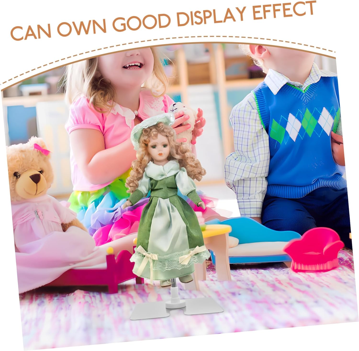 Scaffali per bambole: progettati per riporre ed esporre le bambole, rendendo la scrivania della stanza più pulita e ordinata. Supporto per bambole: realizzato in materiale di acciaio inossidabile con ottime prestazioni e pregevole fattura, forte e robusto per lungo tempo. Supporto per burattini: può essere utilizzato per organizzare ed esporre le tue bambole, rendendole e tridimensionali. Supporto di supporto: semplice e alla moda per aiutare la bambola a mantenere una buona postura. forte e, facile da deformare o danneggiare. Forniture per bambole: migliora l'attrattiva complessiva della tua collezione di bambole: migliora l'attrattiva generale della tua collezione.