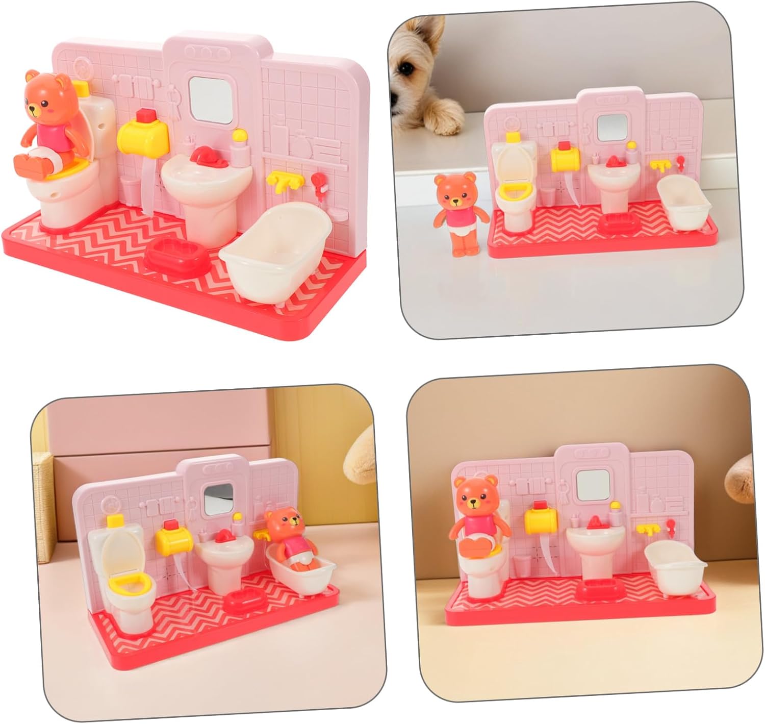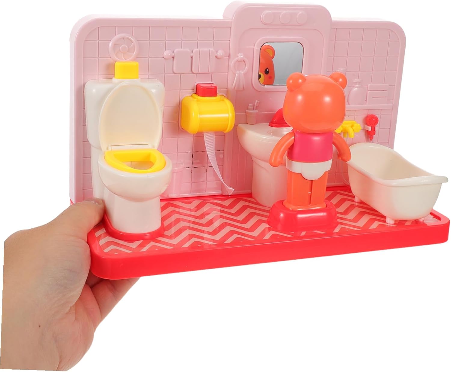 Combinazione coinvolgente: un divertente giocattolo da bagno che una simpatica orsetto, accessori per il bagno della casa delle bambole e un mini gioco di ruolo in bagno, fonte di ispirazione per i set da gioco per il bagno dei , mobili da bagno per , giocattoli per il bagno finto Esperienza realistica: i mobili da bagno per finta toilette/casa delle bambole offrono un realistico per l'addestramento al vasino, rendendo l'apprendimento divertente e meno intimidatorio per i più piccoli, mobili da bagno in miniatura, simpatico giocattolo da toilette a forma di orso Imparare giocando: set da gioco per l'addestramento al vasino / set da gioco educativo per il bagno che promuovono la comunicazione e il lavoro di squadra, sviluppando competenze essenziali tramite esercizi di gioco di finzione in bagno condiviso, giochi di finzione in bagno, giochi per il bagno Simpatico giocattolo da toilette a forma di orso: giocattoli finti per il bagno in una casa delle bambole / mini set di giocattoli per il bagno che offrono un autentico gioco di ruolo in bagno, preparando i più piccoli al successo nell'uso del vasino nel mondo reale, set da gioco per il bagno finto, set da gioco per il bagno per Miglioramento delle abilità: il gioco di ruolo con giocattoli in miniatura per il bagno / accessori per bambole migliora le abilità sociali che il vocabolario mentre i si divertono con scenari educativi per il bagno di , giocattoli in miniatura per il bagno, simpatico giocattolo da bagno a forma di orso